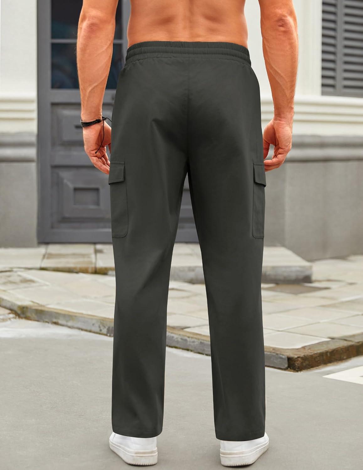 COOFANDY mens trousers casual pants with a straight-leg design are comfortable and loose, which can adapt to the big movements without tearing. 4 large pockets and a drawstring waistband design, which is more comfortable and convenient to wear. Reinforced treatment at the pocket, keeps your phone, keys or wallet from falling out when jogging or running.