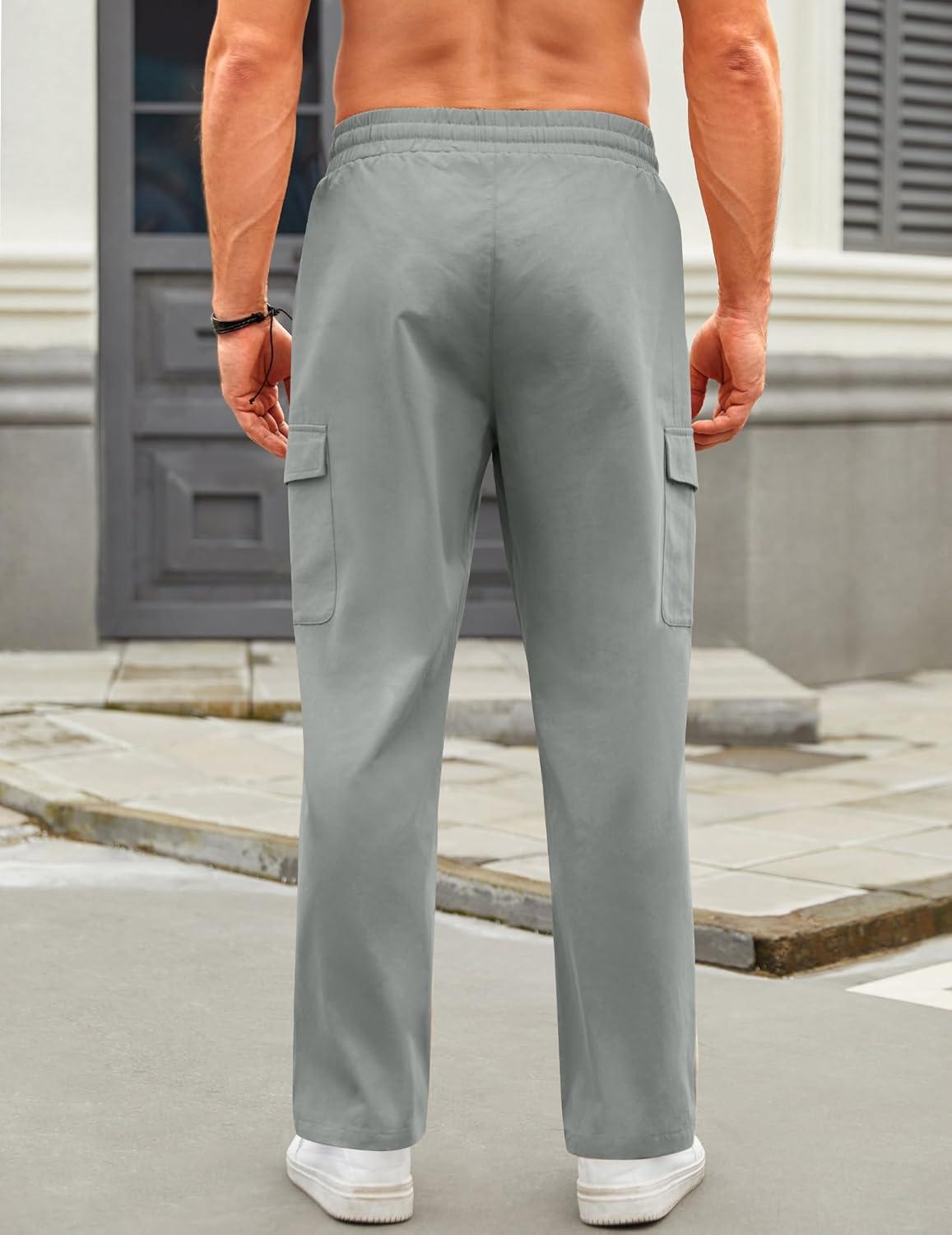Get the COOFANDY Mens Casual Cargo Pants Relaxed Fit Outdoor Hiking Pants Cotton Drawstring Sweatpants with Pockets(Light Grey) you want at a discounted price during our markdown sale event.