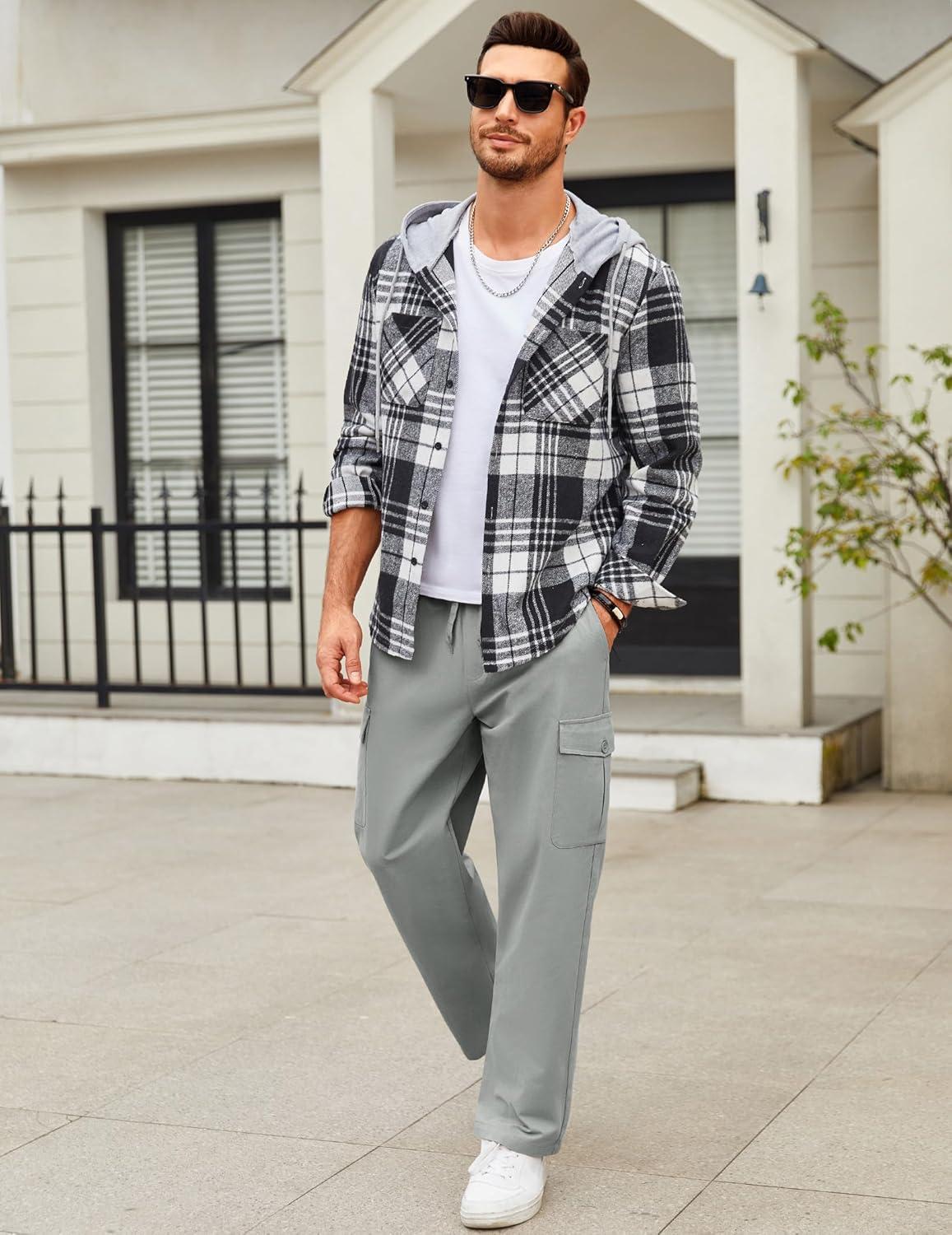 COOFANDY mens trousers casual pants with a straight-leg design are comfortable and loose, which can adapt to the big movements without tearing. 4 large pockets and a drawstring waistband design, which is more comfortable and convenient to wear. Reinforced treatment at the pocket, keeps your phone, keys or wallet from falling out when jogging or running.