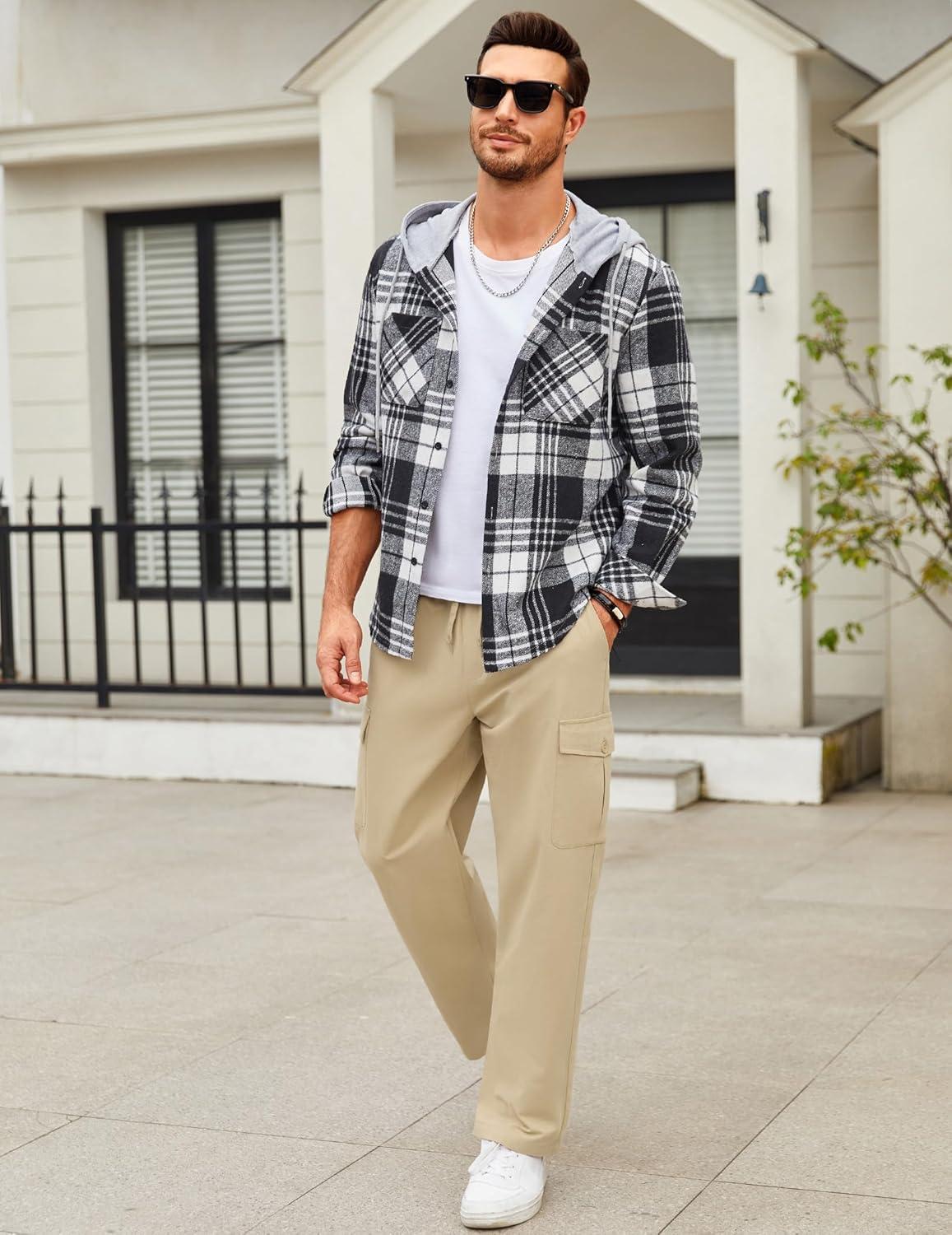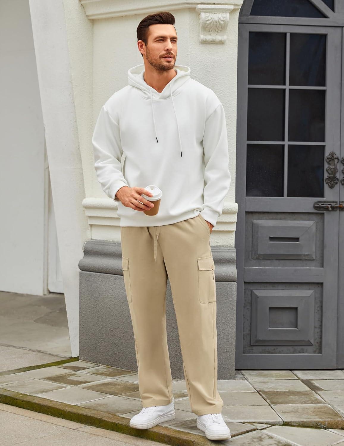 COOFANDY mens trousers casual pants with a straight-leg design are comfortable and loose, which can adapt to the big movements without tearing. 4 large pockets and a drawstring waistband design, which is more comfortable and convenient to wear. Reinforced treatment at the pocket, keeps your phone, keys or wallet from falling out when jogging or running.