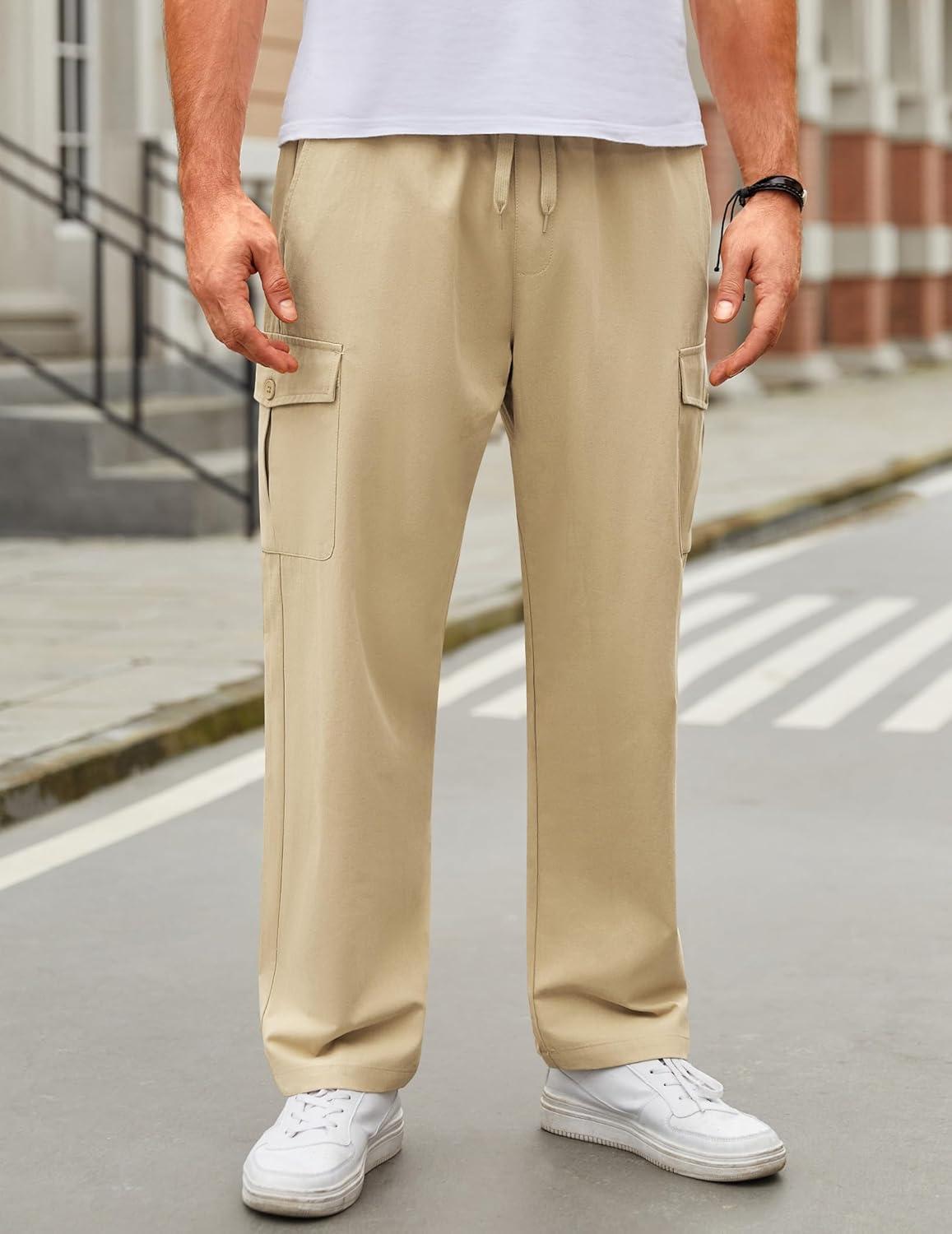 COOFANDY Men's Straight Fit Chino Cargo Pants Lightweight Relaxed Fit Tactical Cargo Work Pants with Multi Pocket