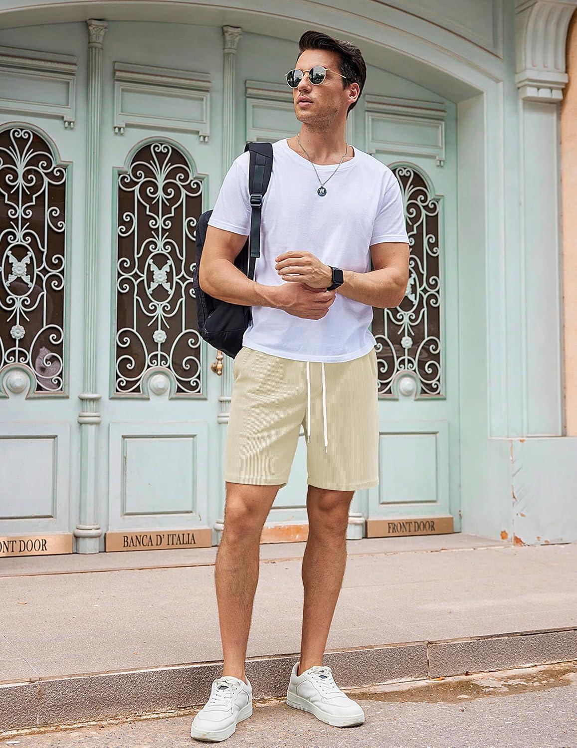 COOFANDY Men's Casual Corduroy Shorts With Elastic Waist, Drawstring, Lightweight Summer Beach Shorts With Pockets(Beige)