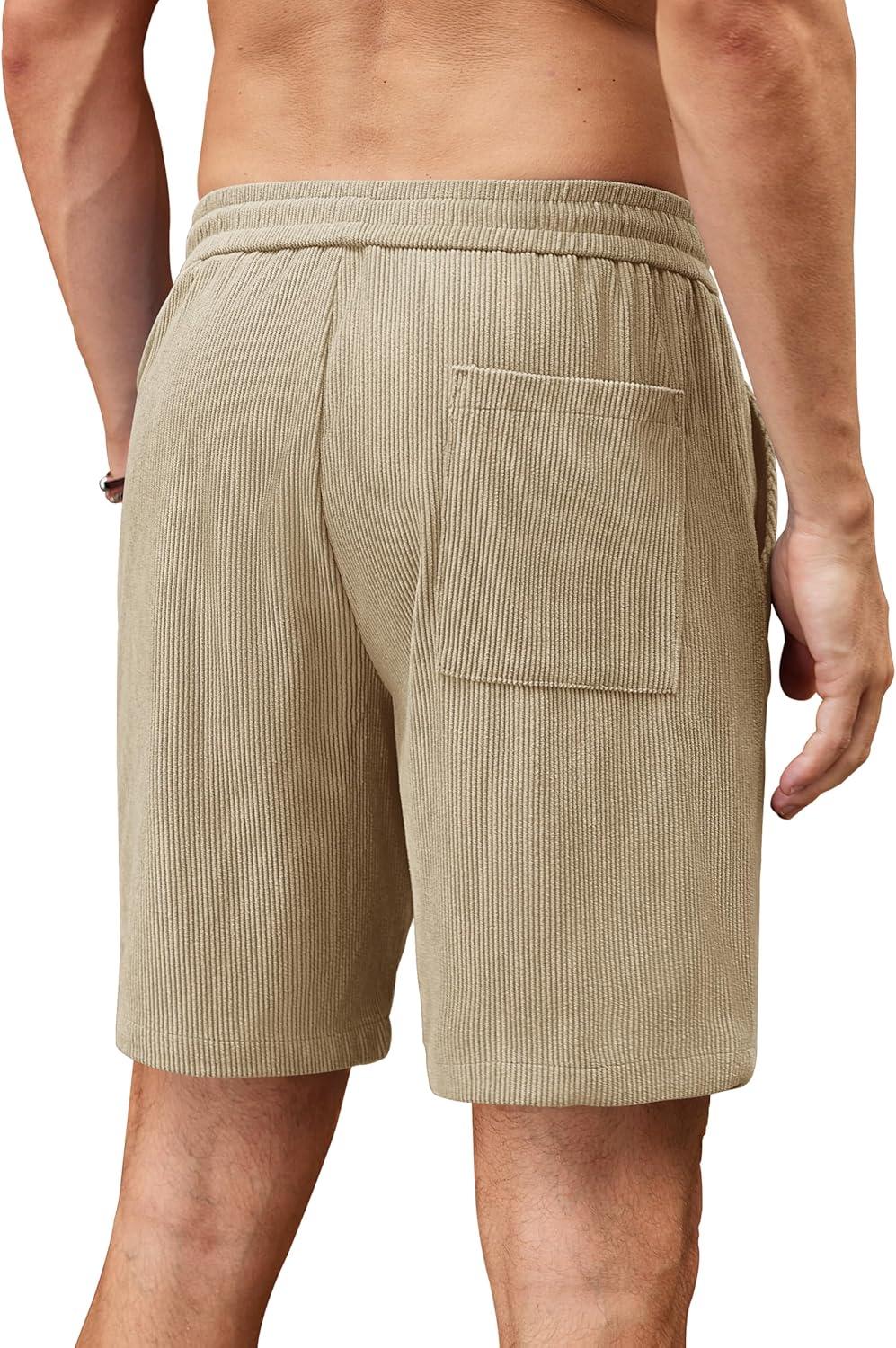 COOFANDY Men’s Casual Corduroy Shorts With Elastic Waist, Drawstring, Lightweight Summer Beach Shorts With Pockets(Light Khaki)