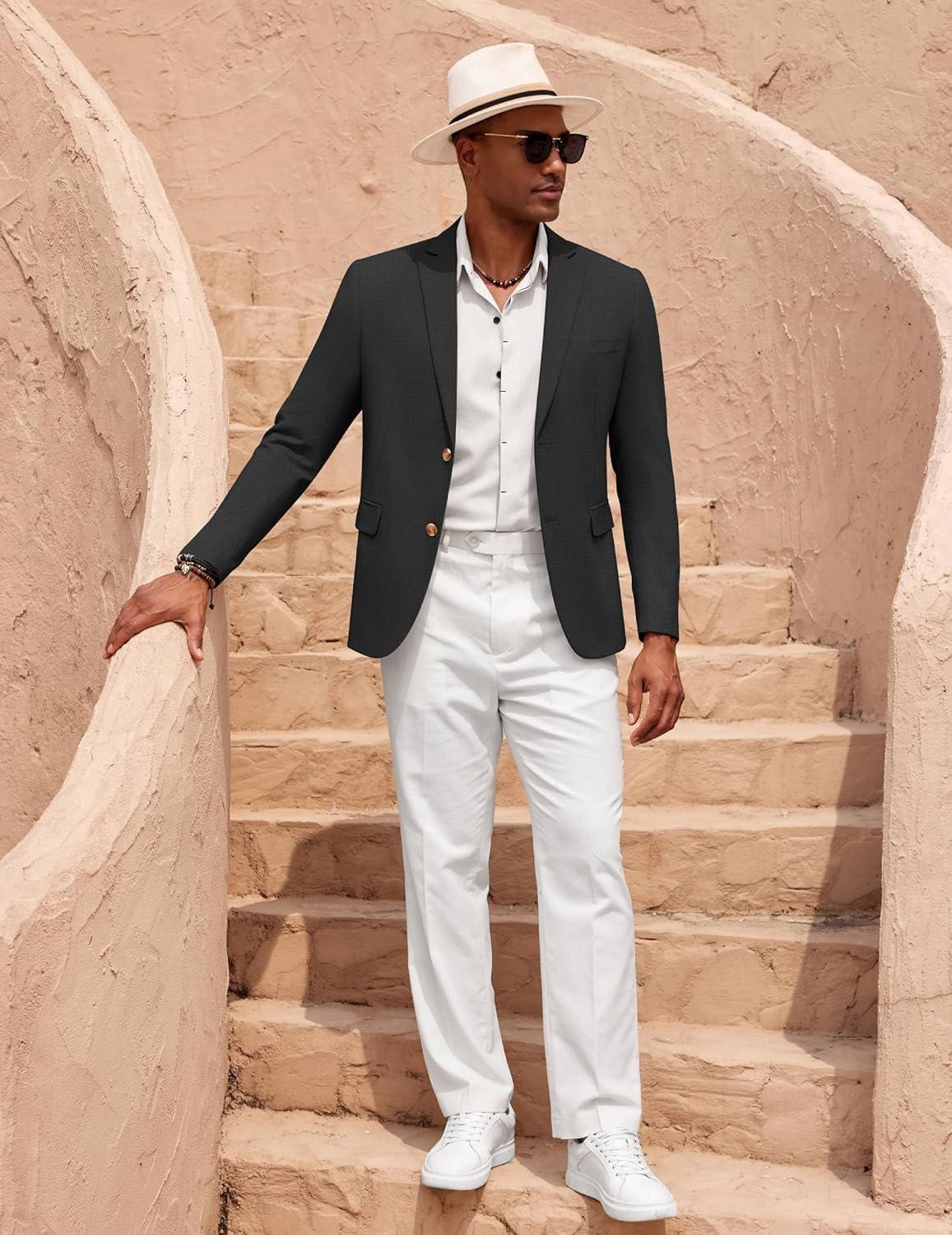 COOFANDY Mens Casual Cotton Linen Blazer Lightweight Linen Sport Coat Two Button Suit Jacket(Black)