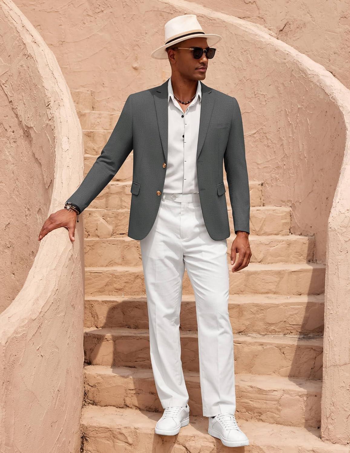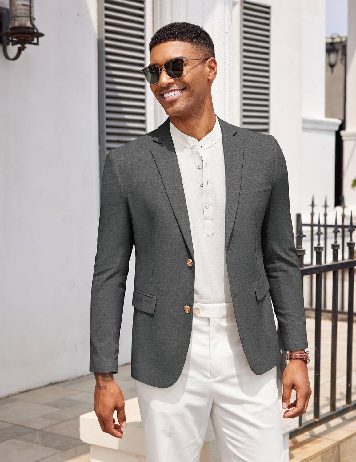 COOFANDY Mens Casual Cotton Linen Blazer Lightweight Linen Sport Coat Two Button Suit Jacket(Dark Grey)