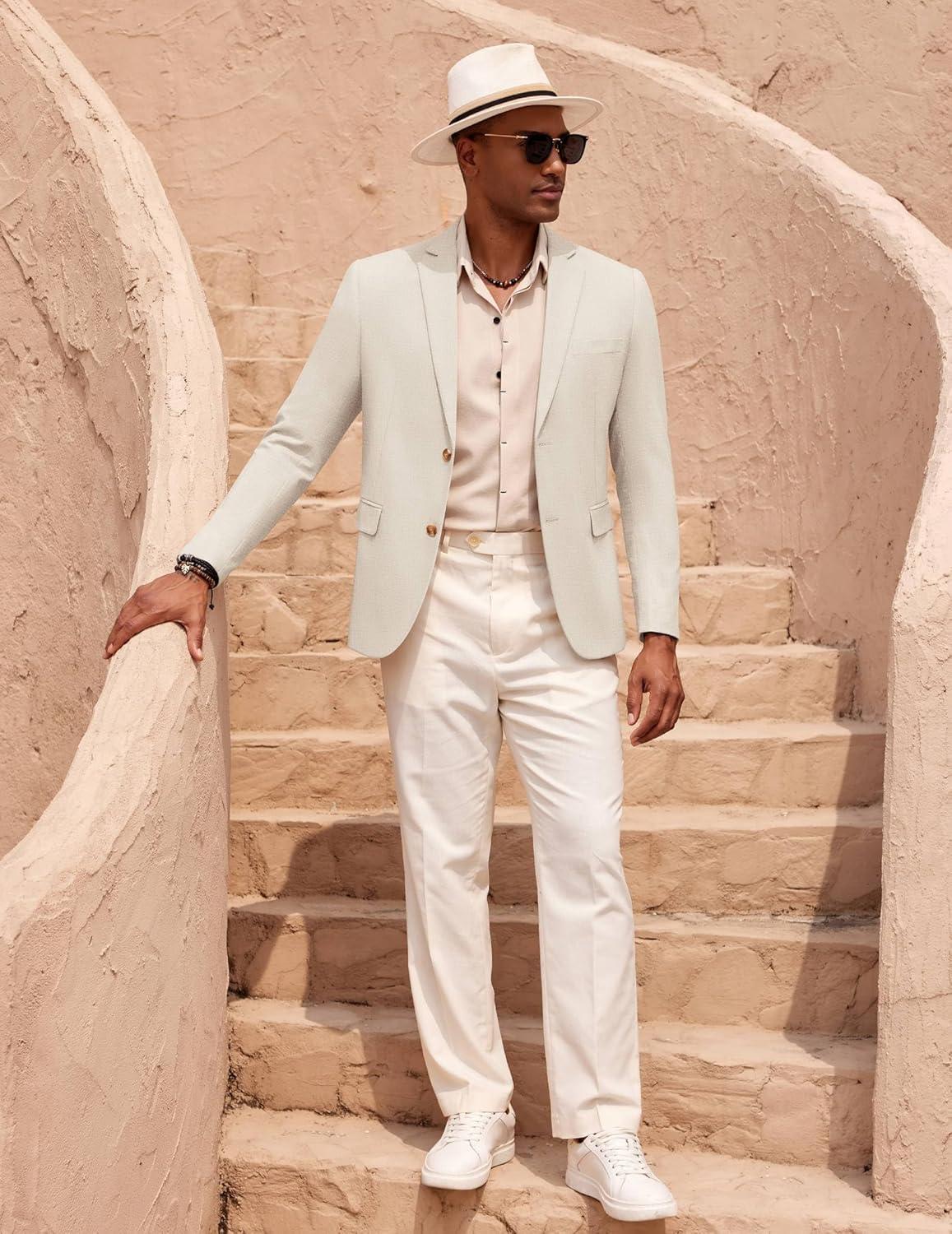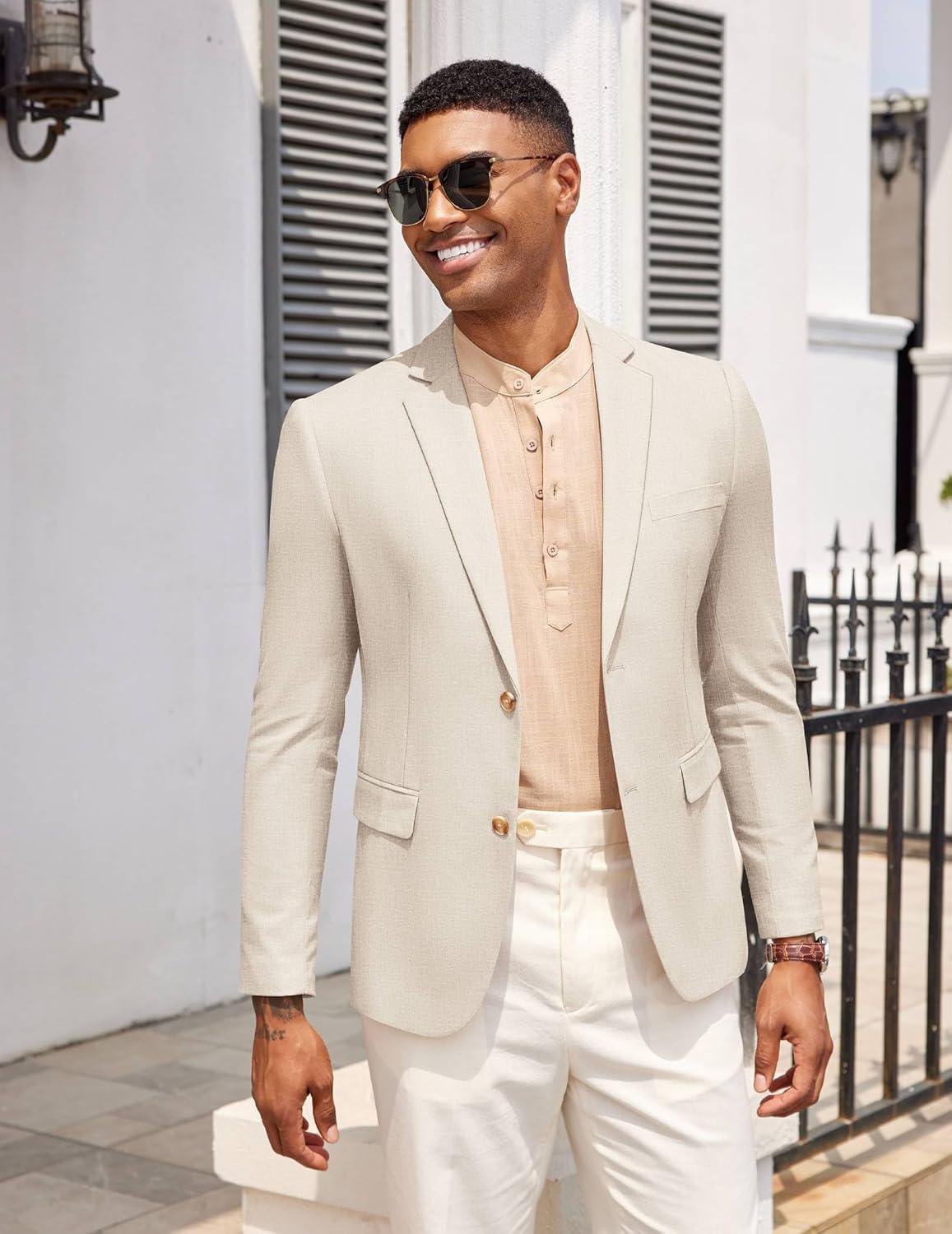 COOFANDY Mens Casual Cotton Linen Blazer Lightweight Linen Sport Coat Two Button Suit Jacket(White)
