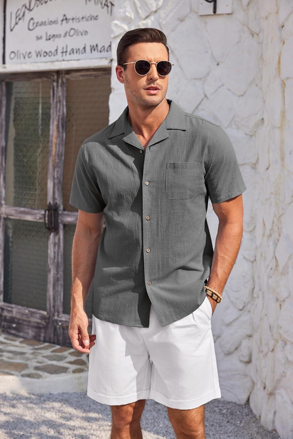Don’t wait, get up to 50% off on COOFANDY Mens Casual Cotton Linen Shirt Short Sleeve Button Up Shirts Summer Beach Top(Dark Gray) during our end-of-season sale event.