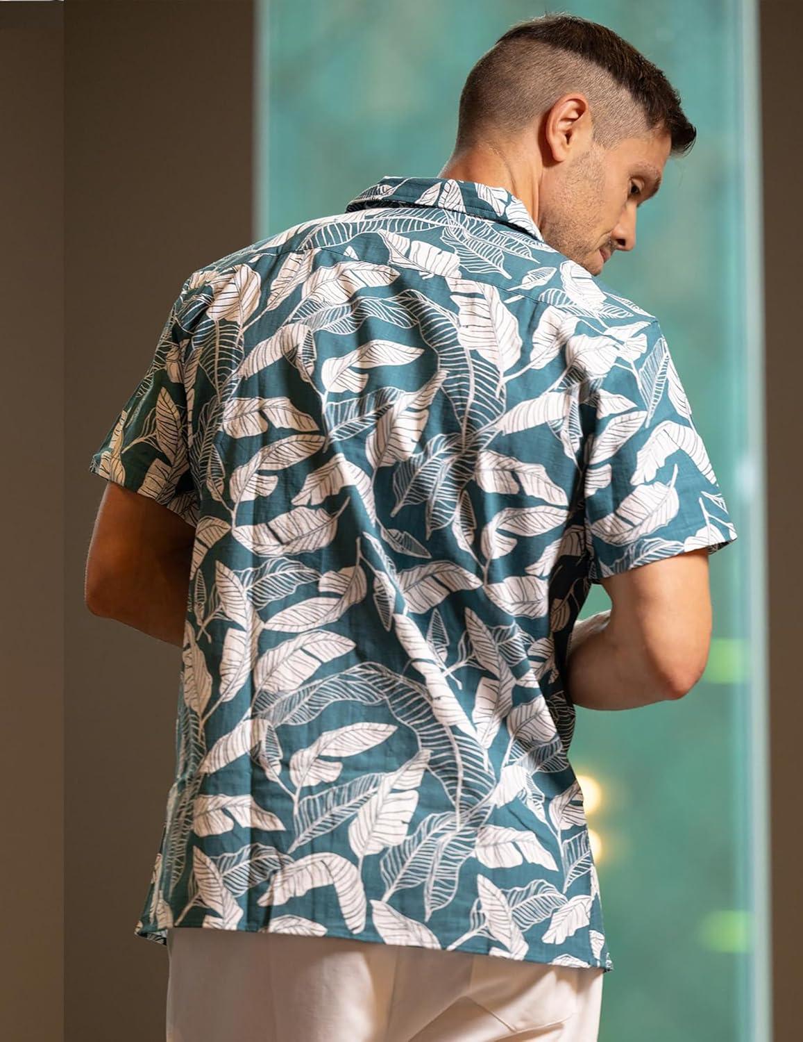COOFANDY Mens Casual Cotton Linen Shirt Short Sleeve Button Up Shirts Summer Beach Top(Green – Banana Leaf)