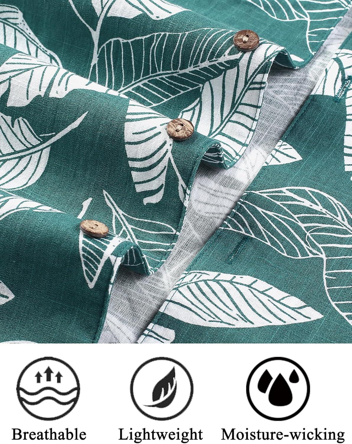 COOFANDY Mens Casual Cotton Linen Shirt Short Sleeve Button Up Shirts Summer Beach Top(Green - Banana Leaf)