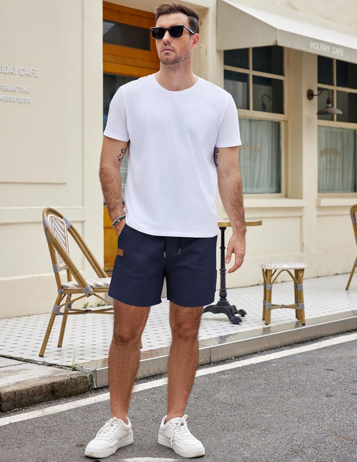 COOFANDY Men's Casual Cotton Shorts 5 Inch Summer Beach Shorts Lightweight Drawstring Elastic Waist Chino Golf Shorts(Navy Blue)