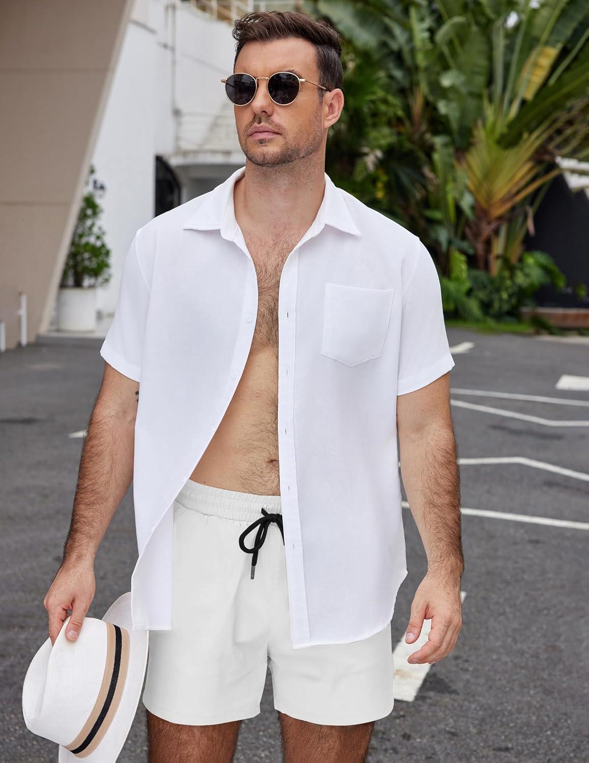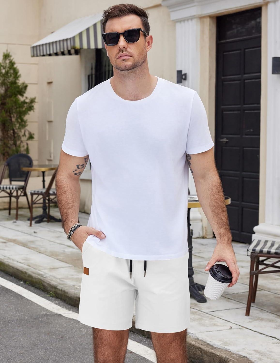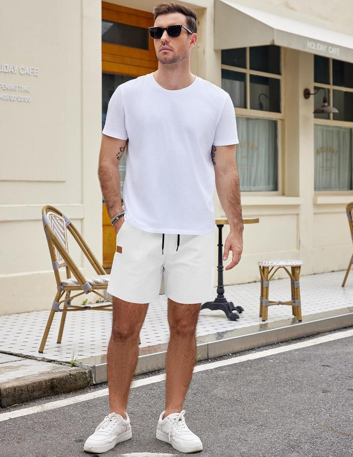 COOFANDY Men's Casual Cotton Shorts 5 Inch Summer Beach Shorts Lightweight Drawstring Elastic Waist Chino Golf Shorts(White)