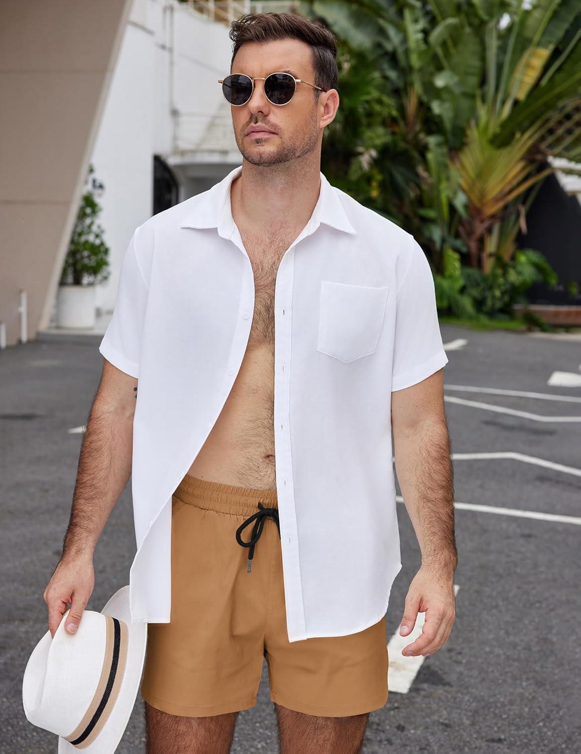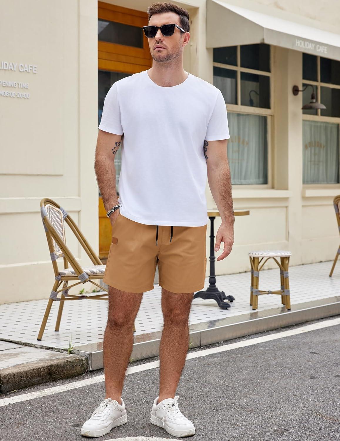 COOFANDY Men’s Casual Cotton Shorts 5 Inch Summer Beach Shorts Lightweight Drawstring Elastic Waist Chino Golf Shorts(Light Tan)