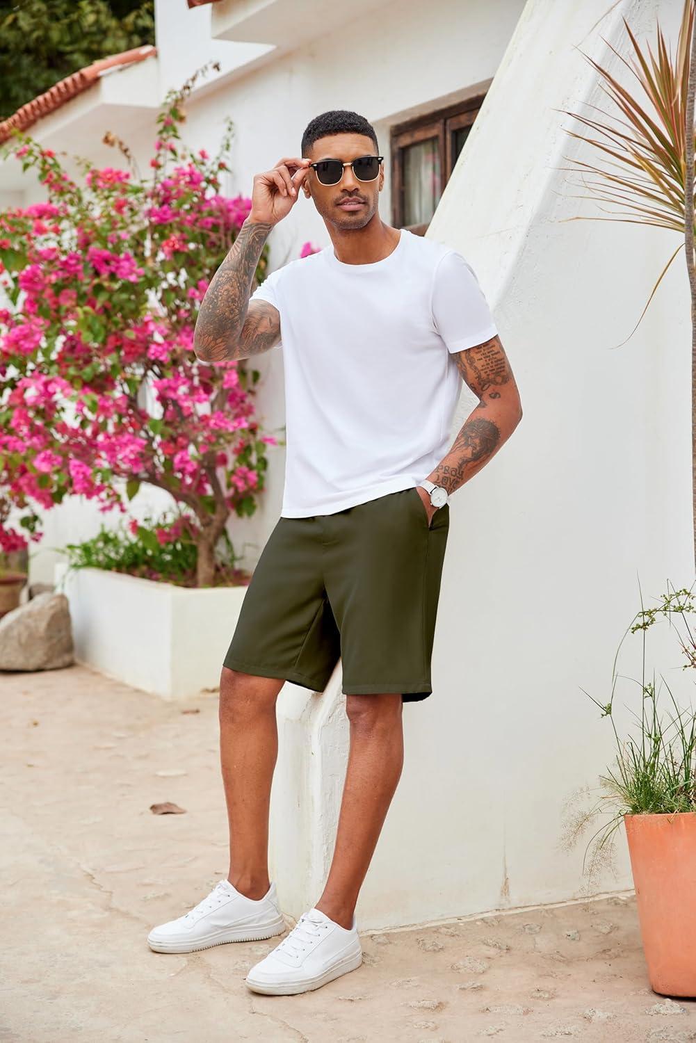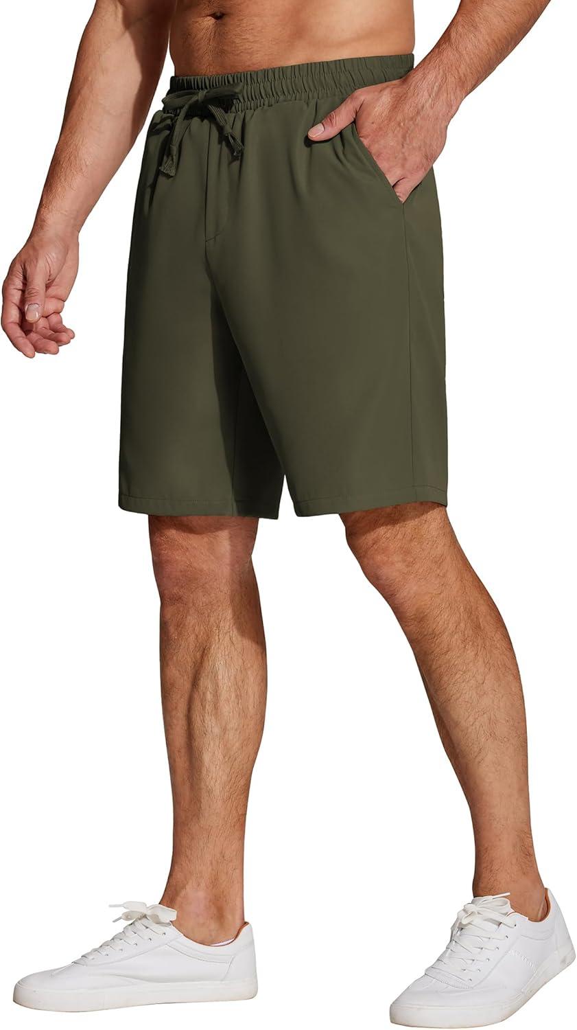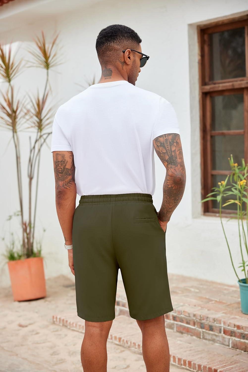 COOFANDY Men's Casual Drawstring Shorts Lightweight Elastic Waist Walking Shorts with Pockets(Army Green)