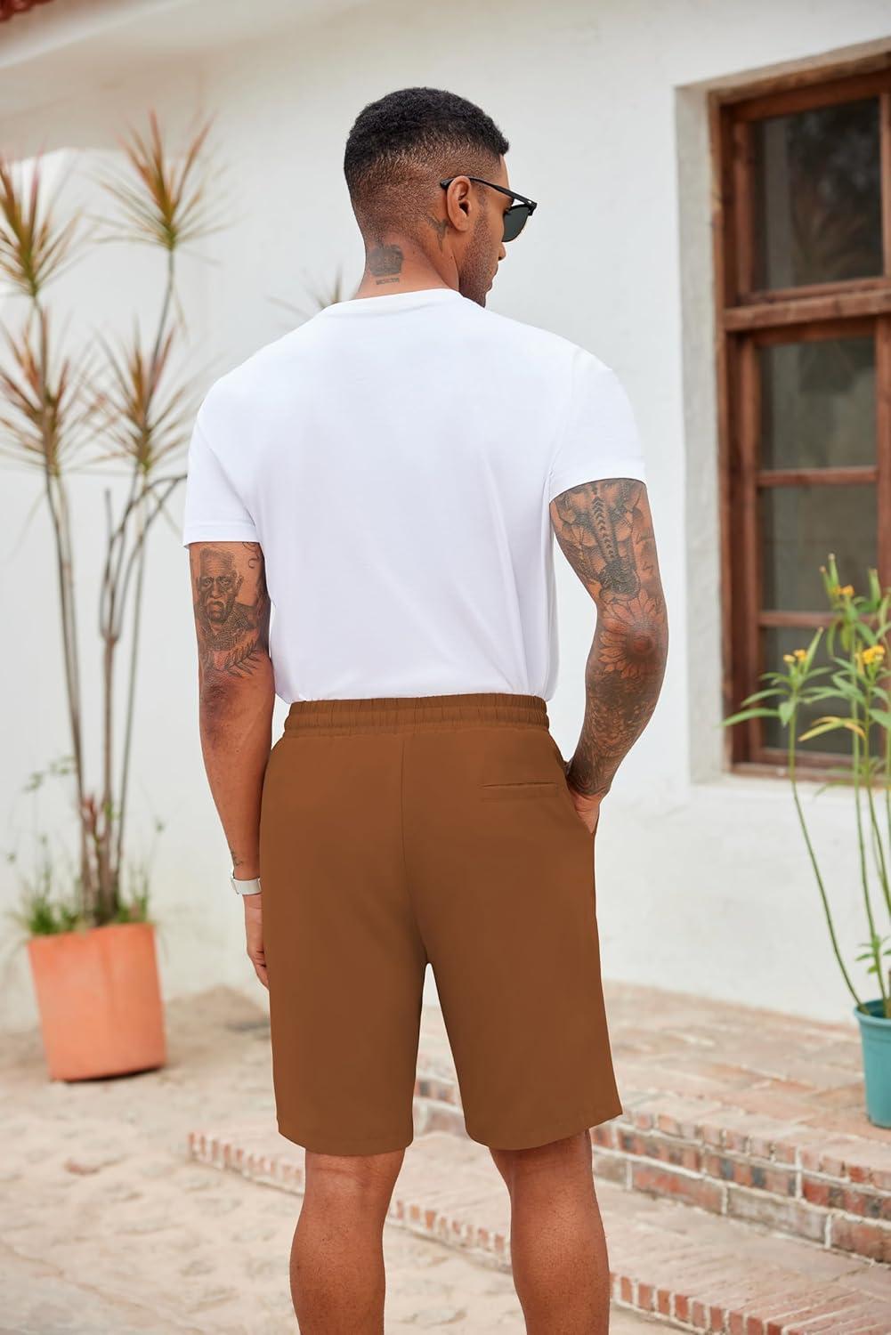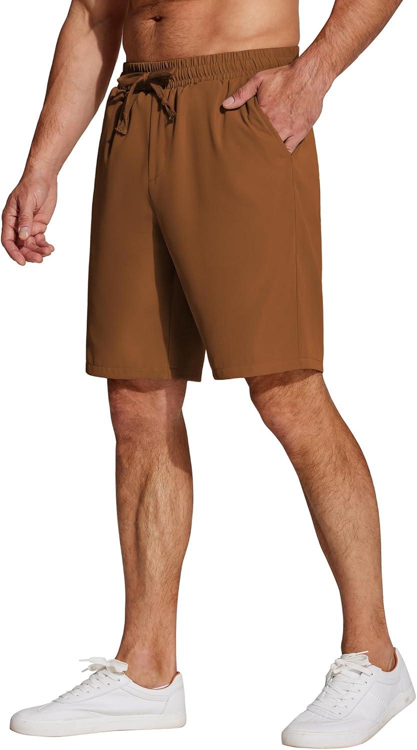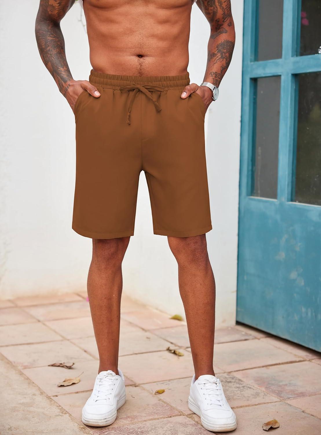 COOFANDY Men's Casual Drawstring Shorts Lightweight Elastic Waist Walking Shorts with Pockets(Brown)