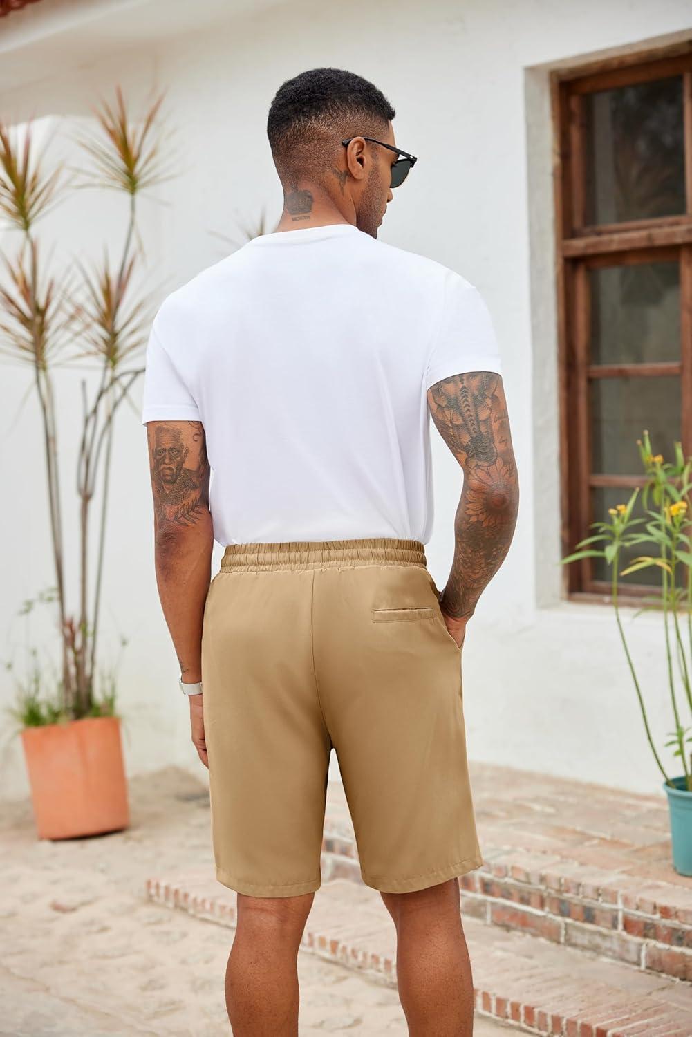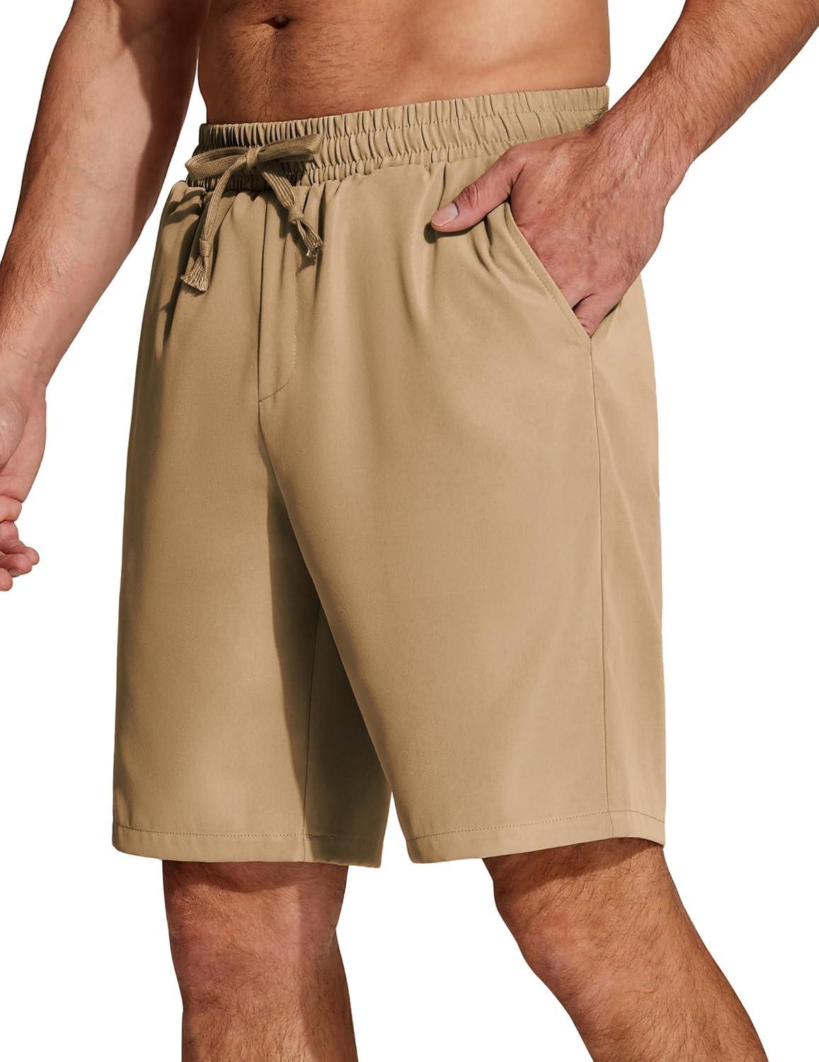 COOFANDY Men's Casual Drawstring Shorts Lightweight Elastic Waist Walking Shorts with Pockets(Khaki)