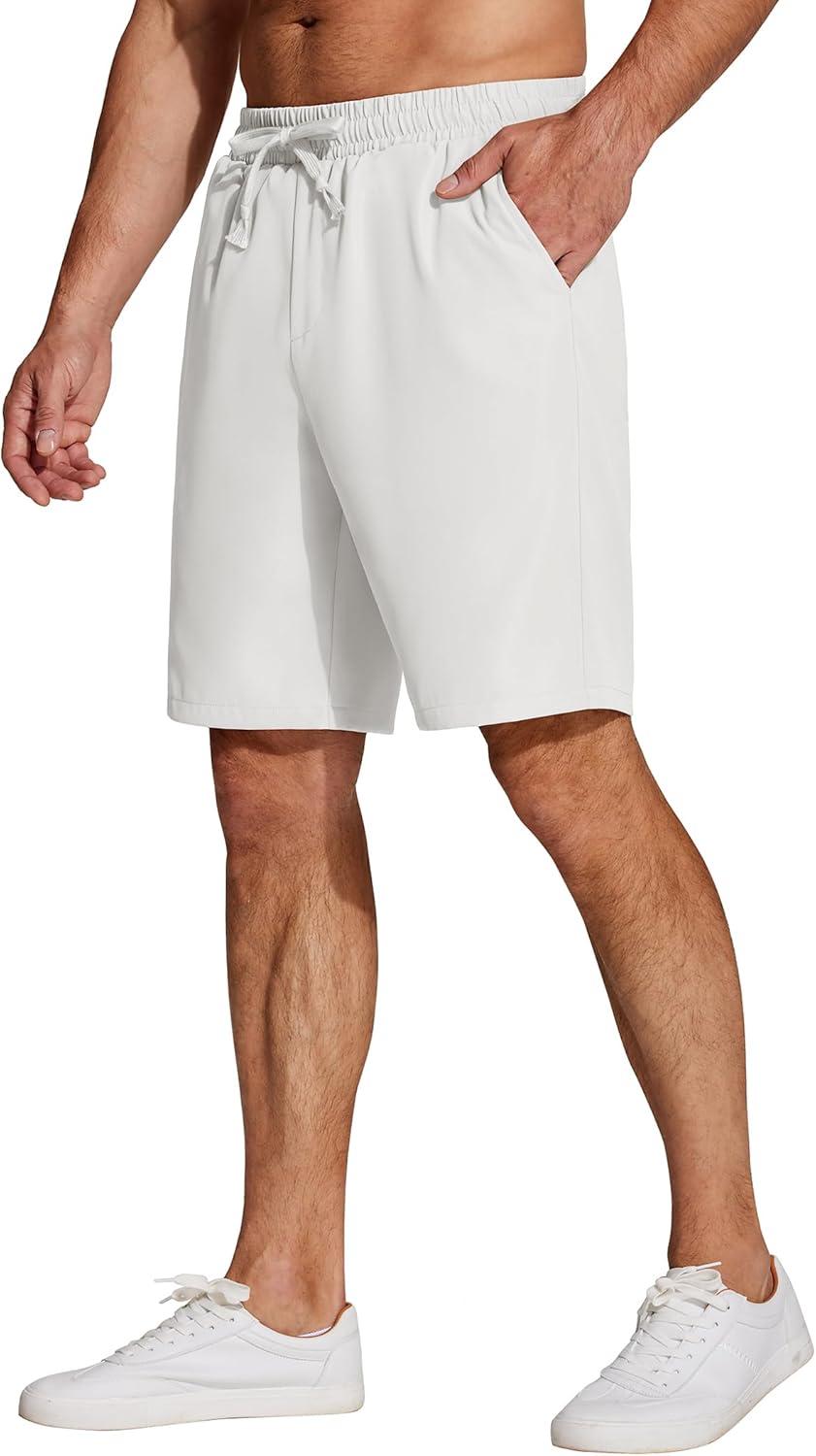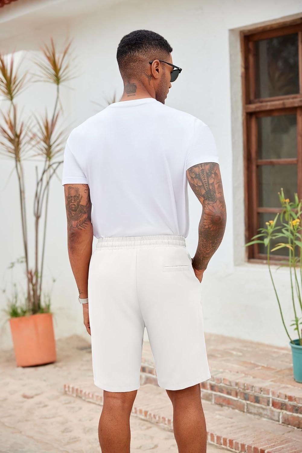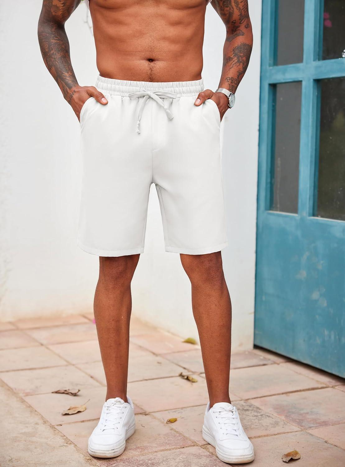 COOFANDY Men's Casual Drawstring Shorts Lightweight Elastic Waist Walking Shorts with Pockets(White)