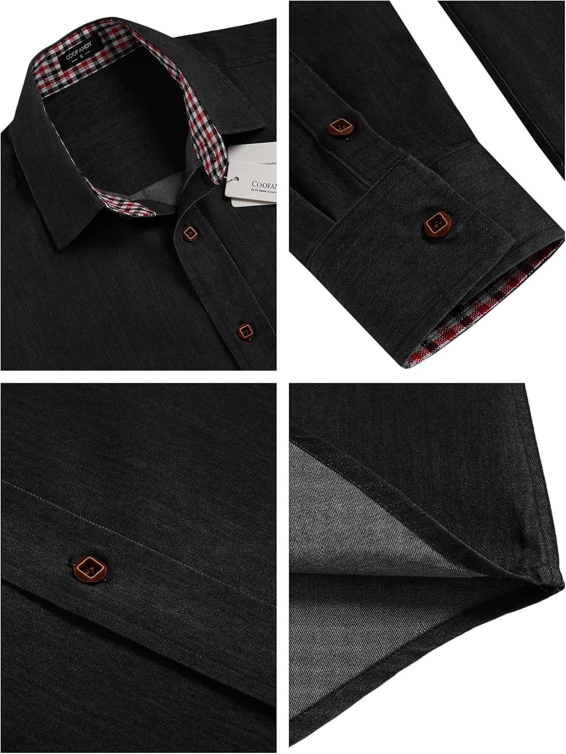 COOFANDY Men's Casual Dress Shirt Button Down Shirts Long-Sleeve Plaid Collar Denim Work Shirt(Type 01 - Black)