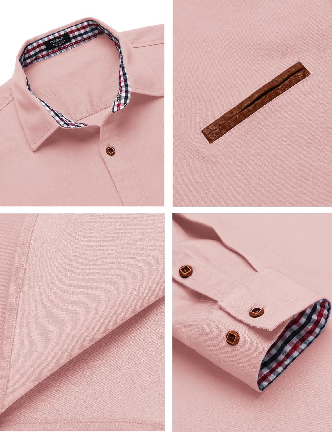 COOFANDY Men's Casual Dress Shirt Button Down Shirts Long-Sleeve Plaid Collar Denim Work Shirt(Type 01 - Pink)