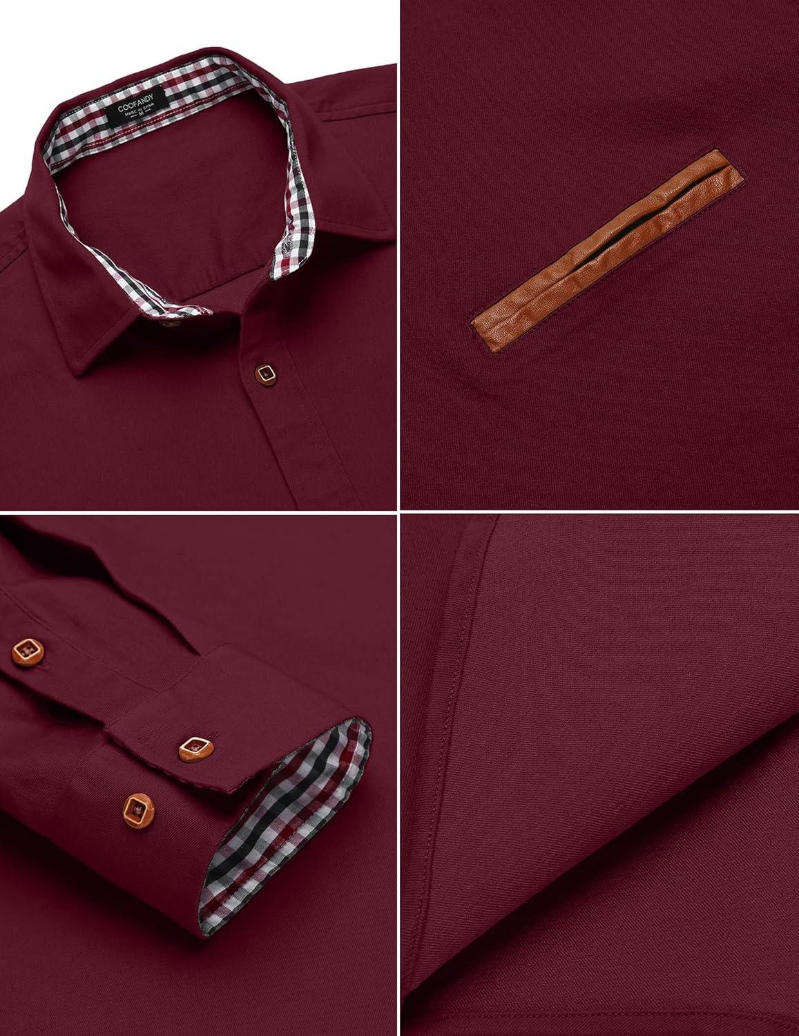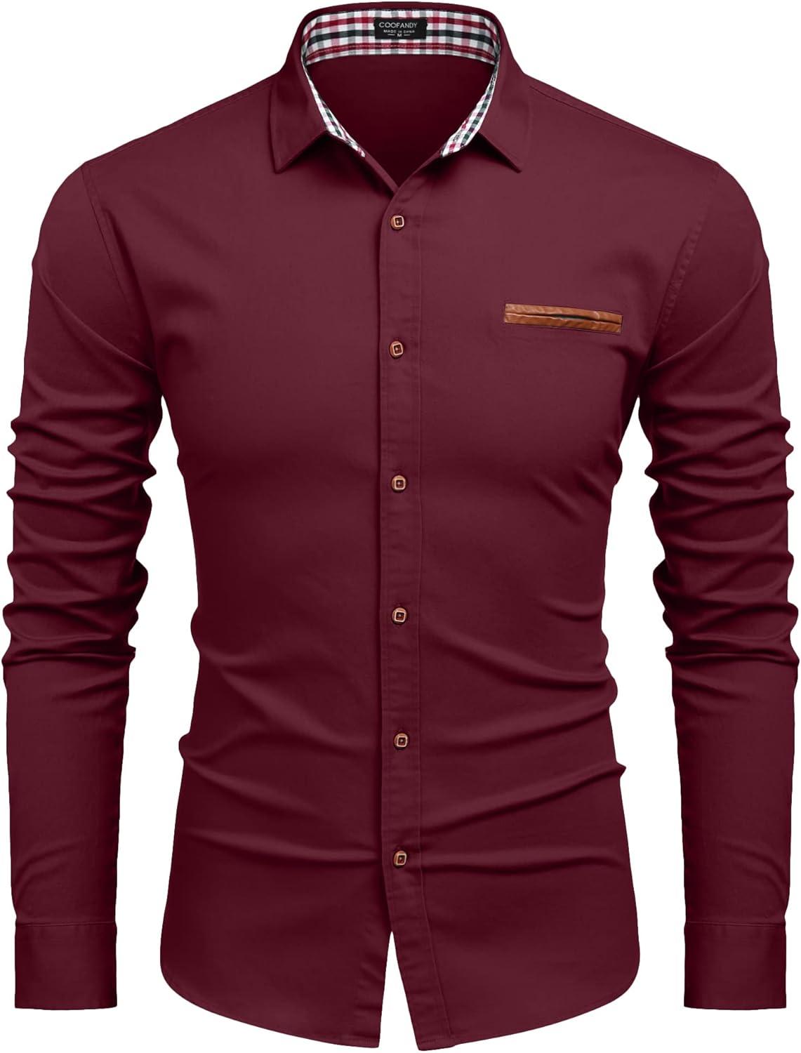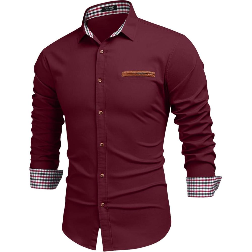 COOFANDY Men’s Casual Dress Shirt Button Down Shirts Long-Sleeve Plaid Collar Denim Work Shirt(Type 02 – Burgundy)