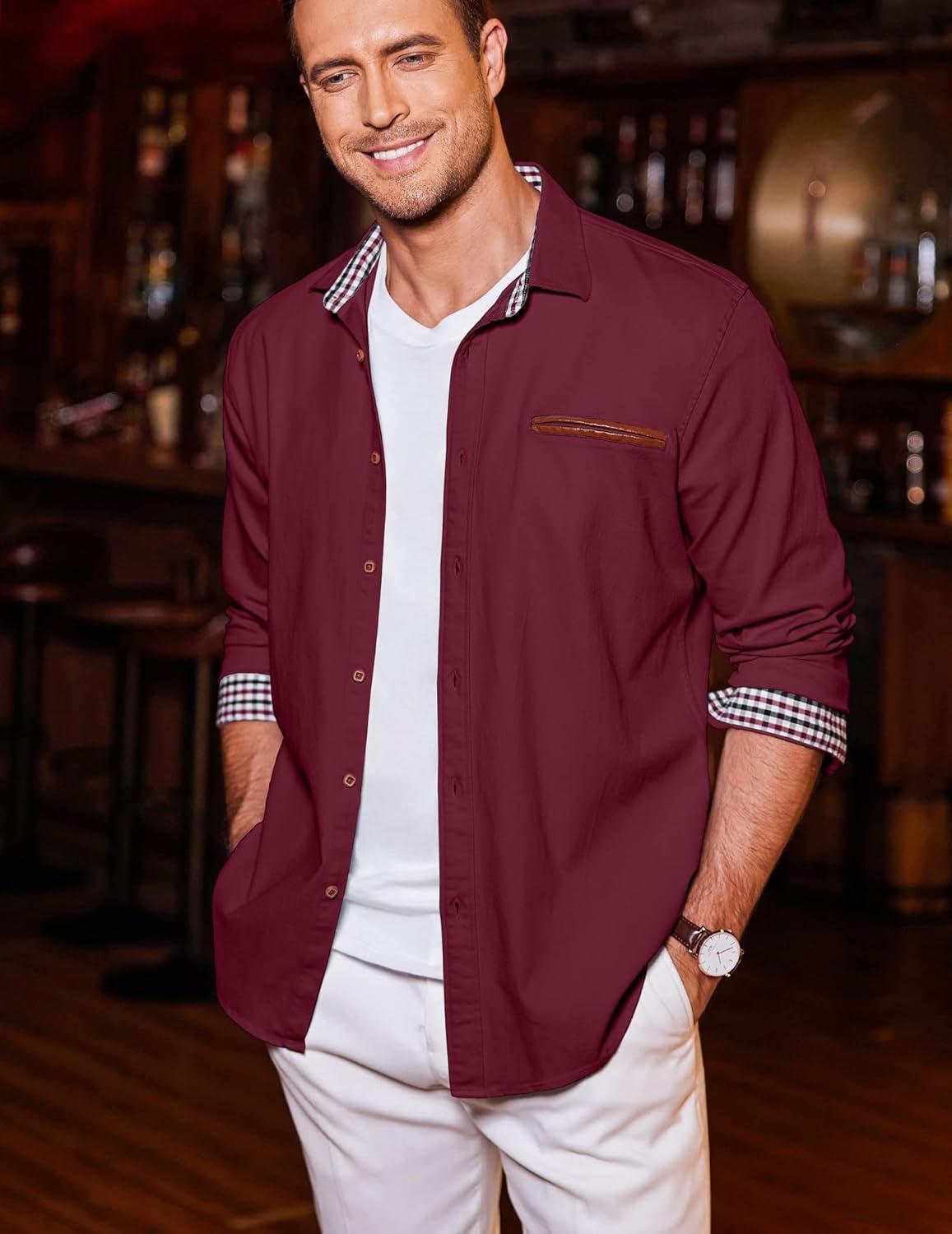 COOFANDY Men's Casual Dress Shirt Button Down Shirts Long-Sleeve Plaid Collar Denim Work Shirt(Type 01 - Red)