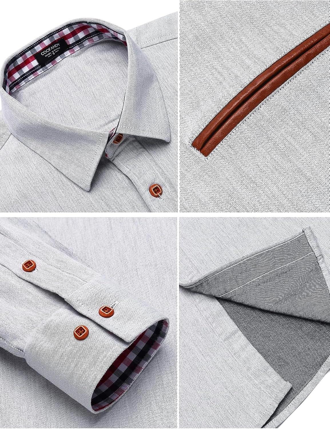 COOFANDY Men’s Casual Dress Shirt Button Down Shirts Long-Sleeve Plaid Collar Denim Work Shirt(Type 01 Grey)
