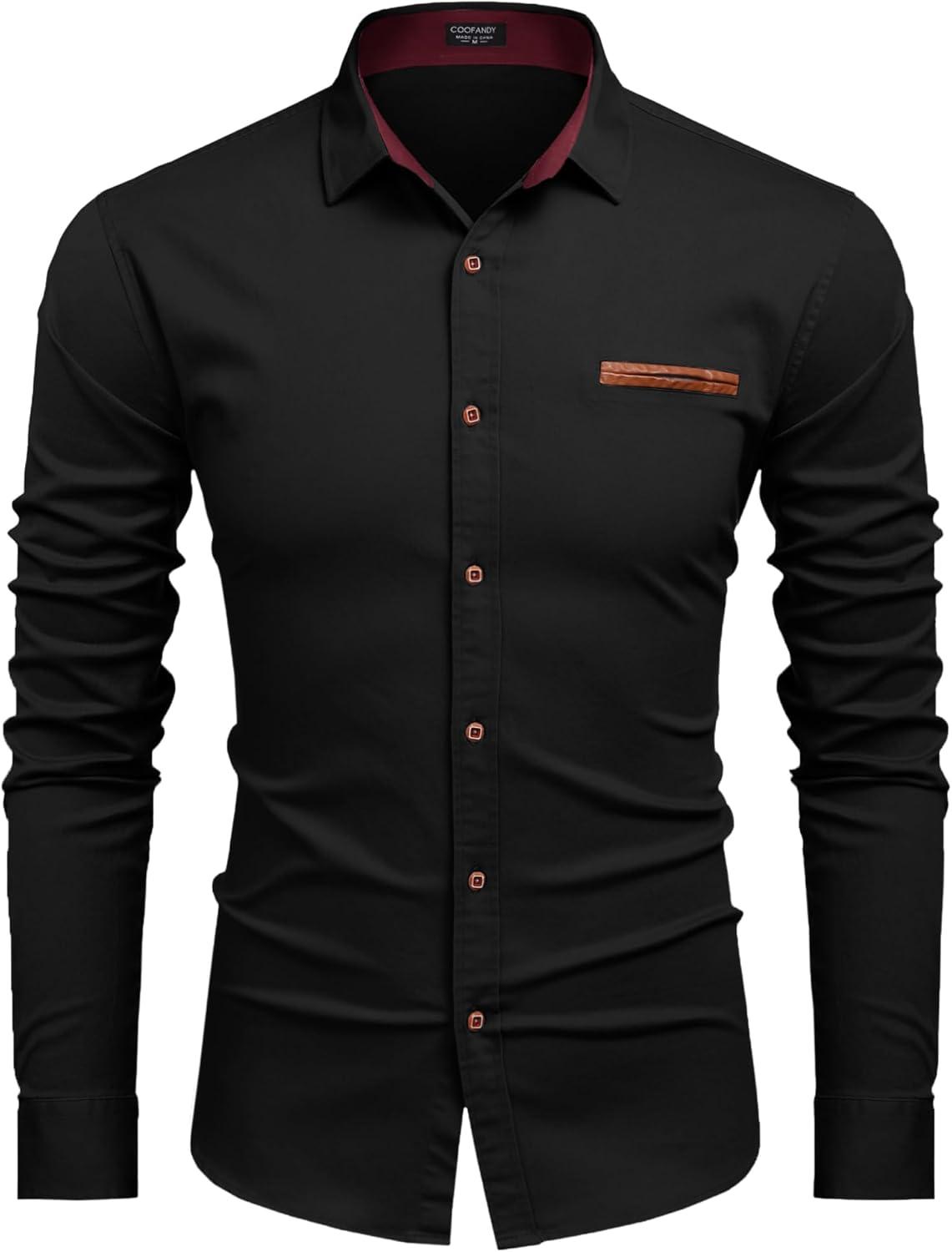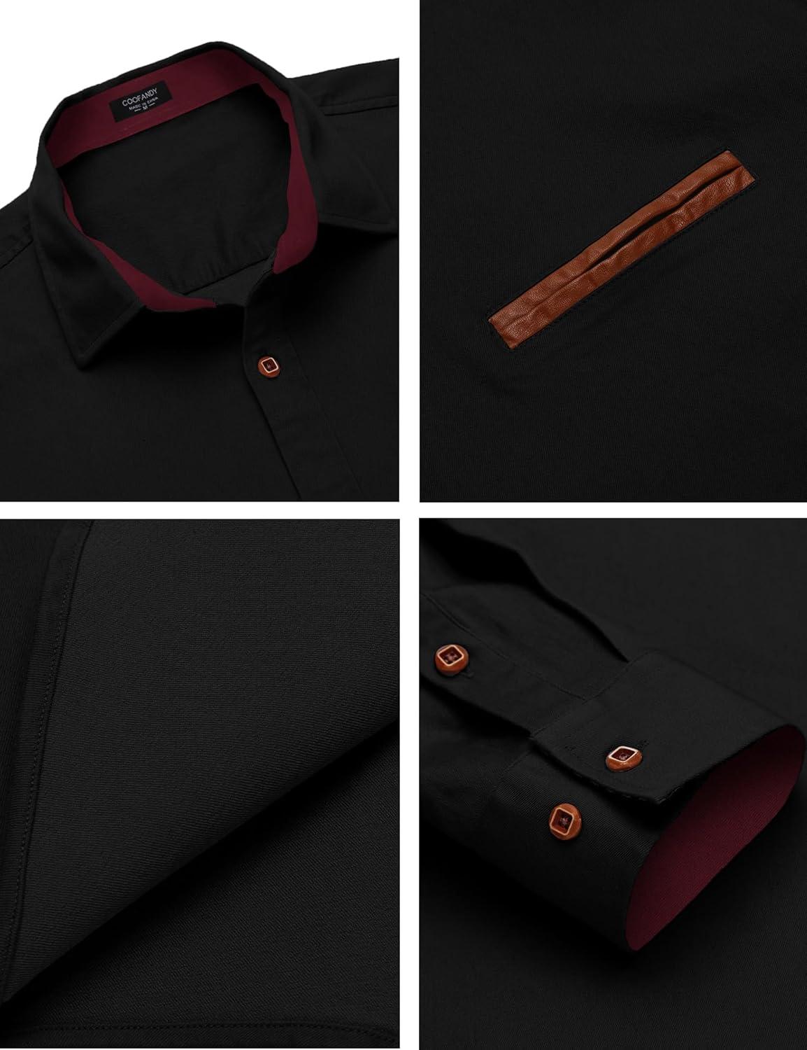 COOFANDY Men's Casual Dress Shirt Button Down Shirts Long-Sleeve Plaid Collar Denim Work Shirt(Type 02 - Black)