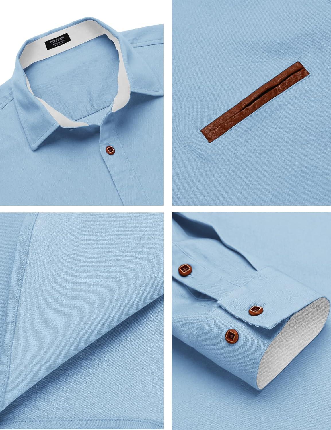 COOFANDY Men's Casual Dress Shirt Button Down Shirts Long-Sleeve Plaid Collar Denim Work Shirt(Type 02 - Light Blue)