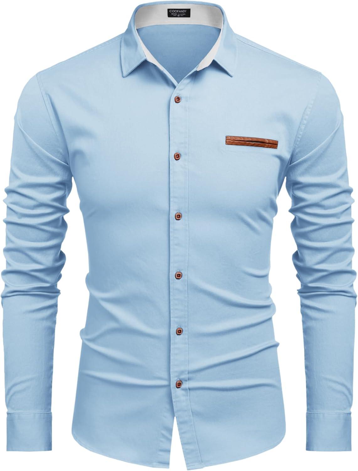 COOFANDY Men’s Casual Dress Shirt Button Down Shirts Long-Sleeve Plaid Collar Denim Work Shirt(Type 02 – Light Blue)