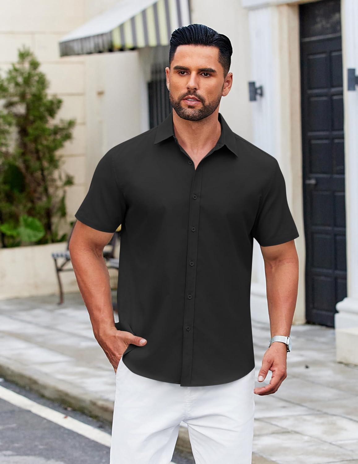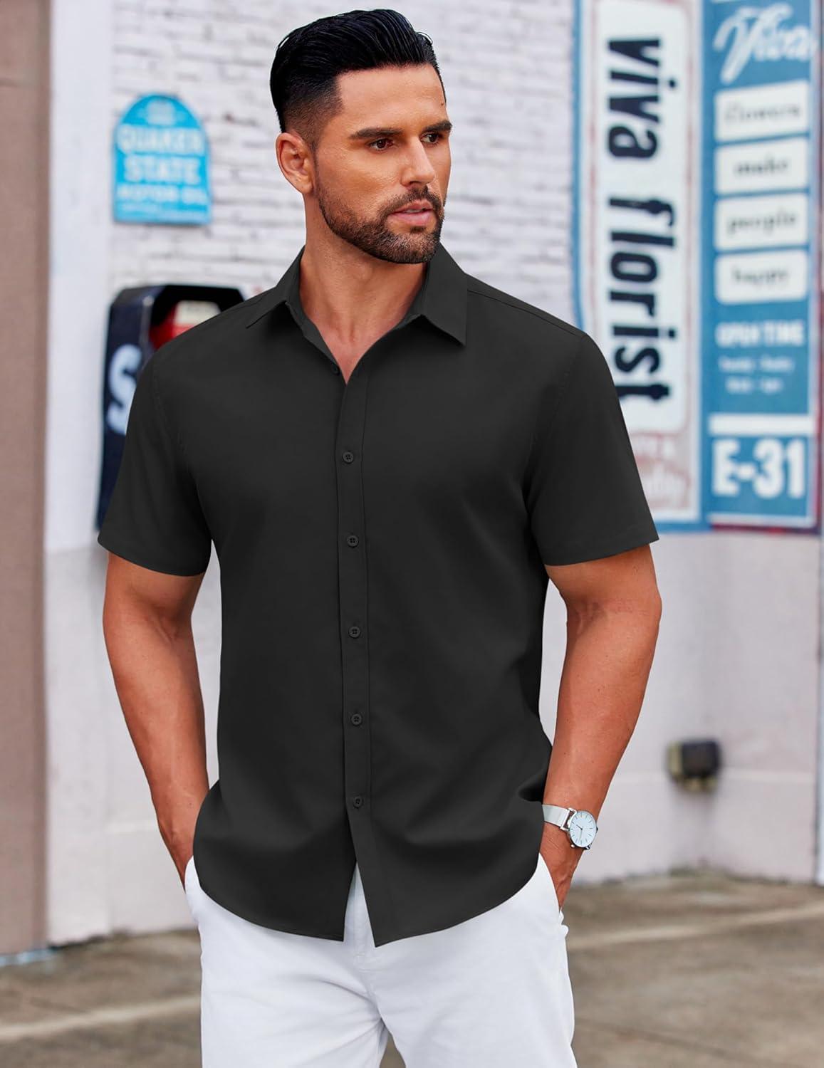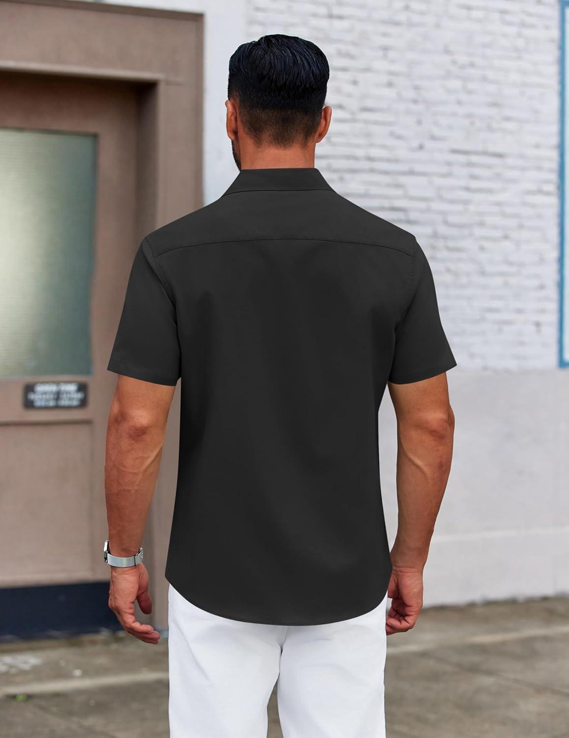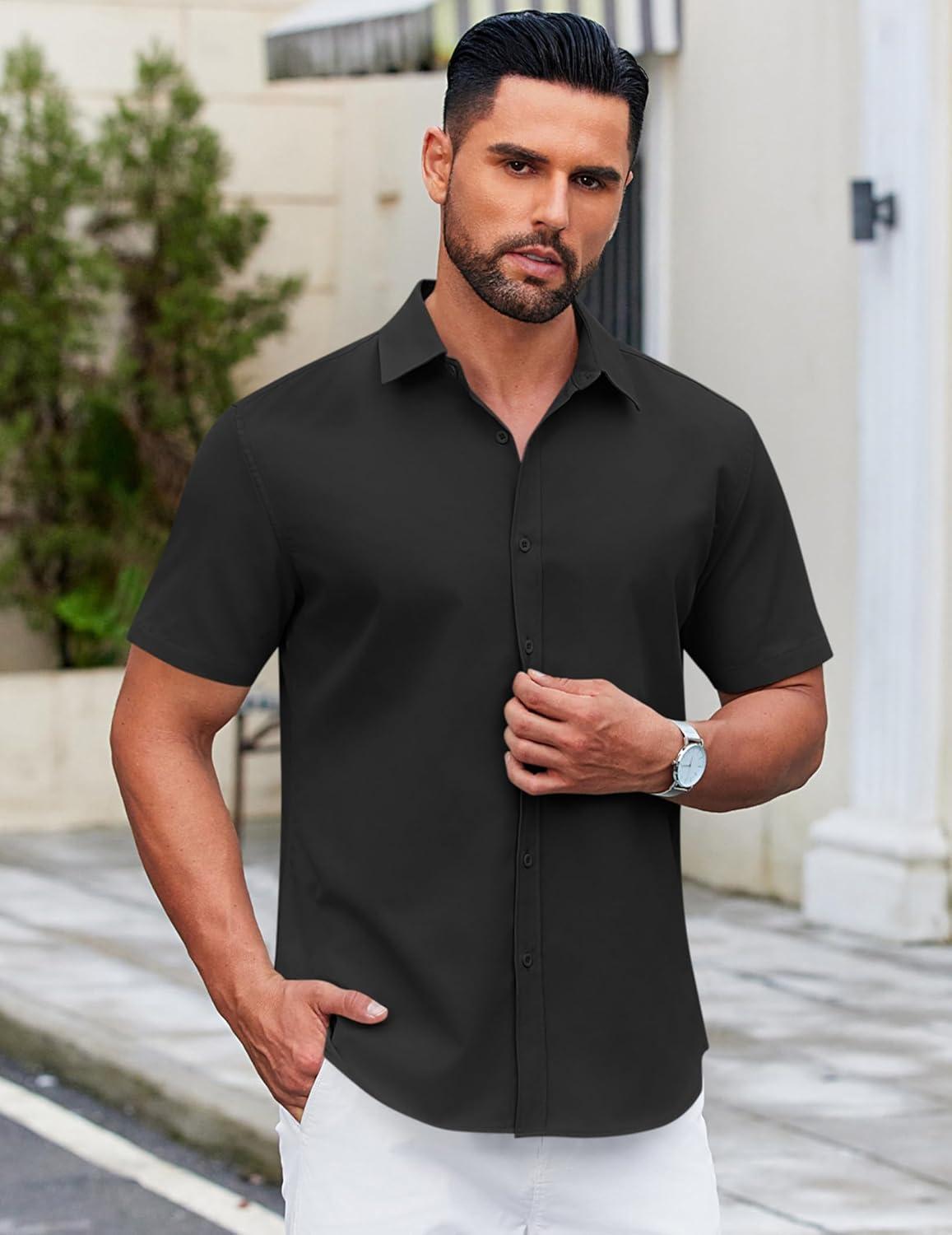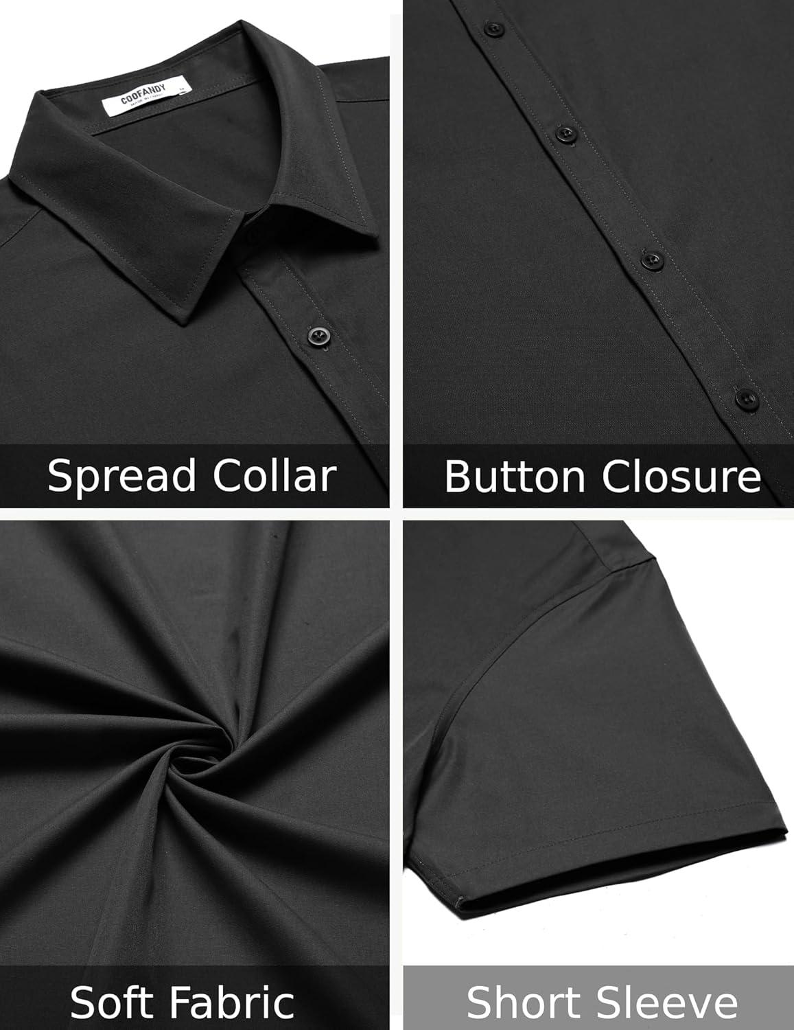 COOFANDY Men's Casual Dress Shirt Short Sleeve Button Down Shirts Summer Wedding Untucked Shirt(Black)