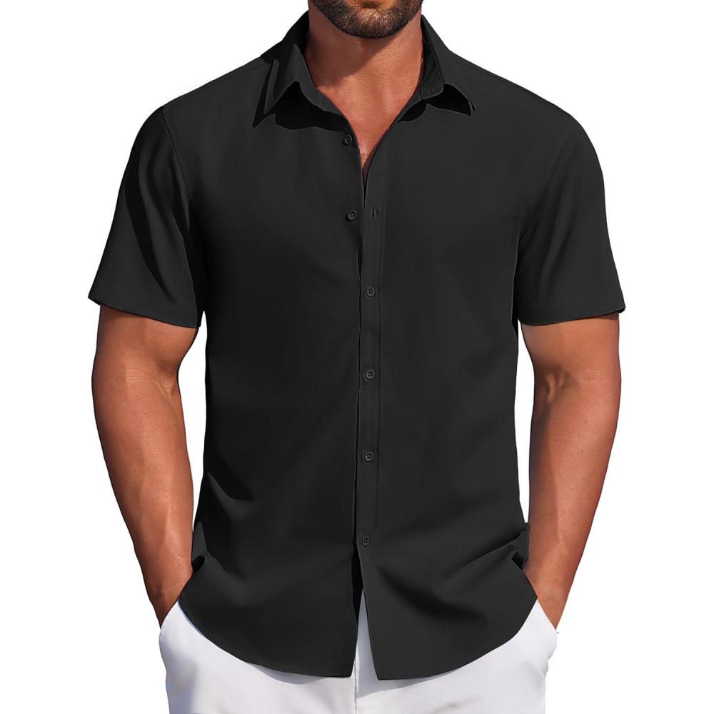 COOFANDY Men’s Casual Dress Shirt Short Sleeve Button Down Shirts Summer Wedding Untucked Shirt(Black)