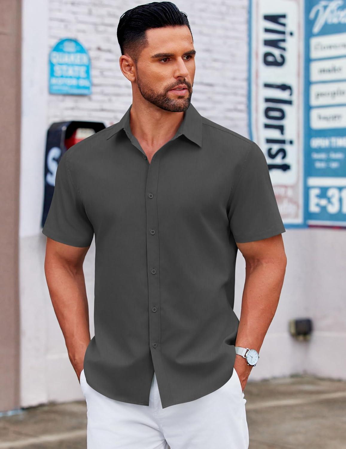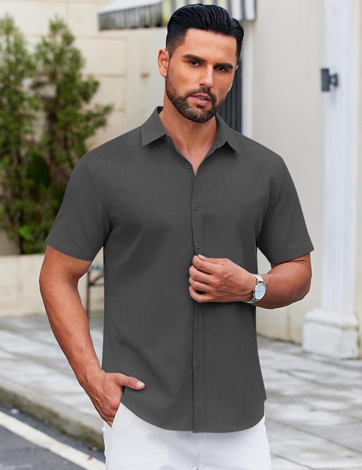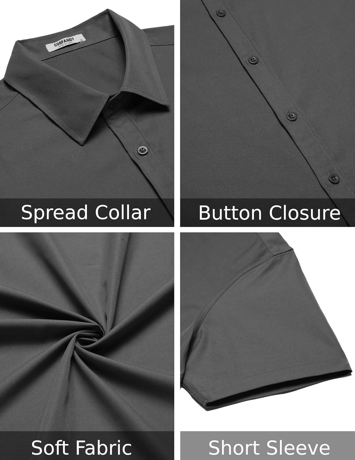 COOFANDY Men's Casual Dress Shirt Short Sleeve Button Down Shirts Summer Wedding Untucked Shirt(Charcoal Gray)