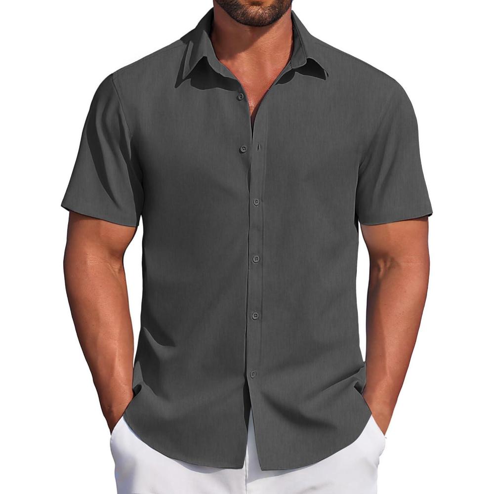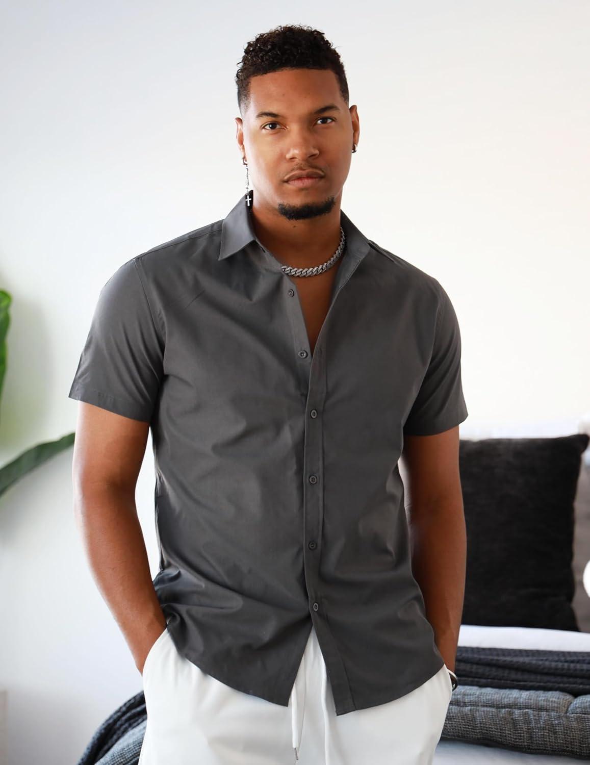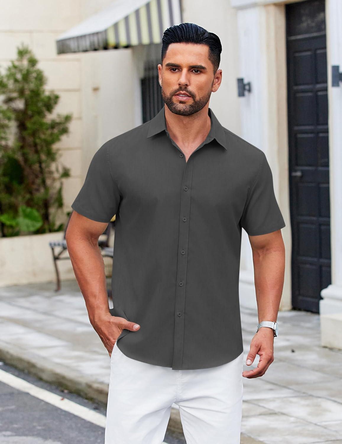 COOFANDY Men's Casual Dress Shirt Short Sleeve Button Down Shirts Summer Wedding Untucked Shirt(Charcoal Gray)