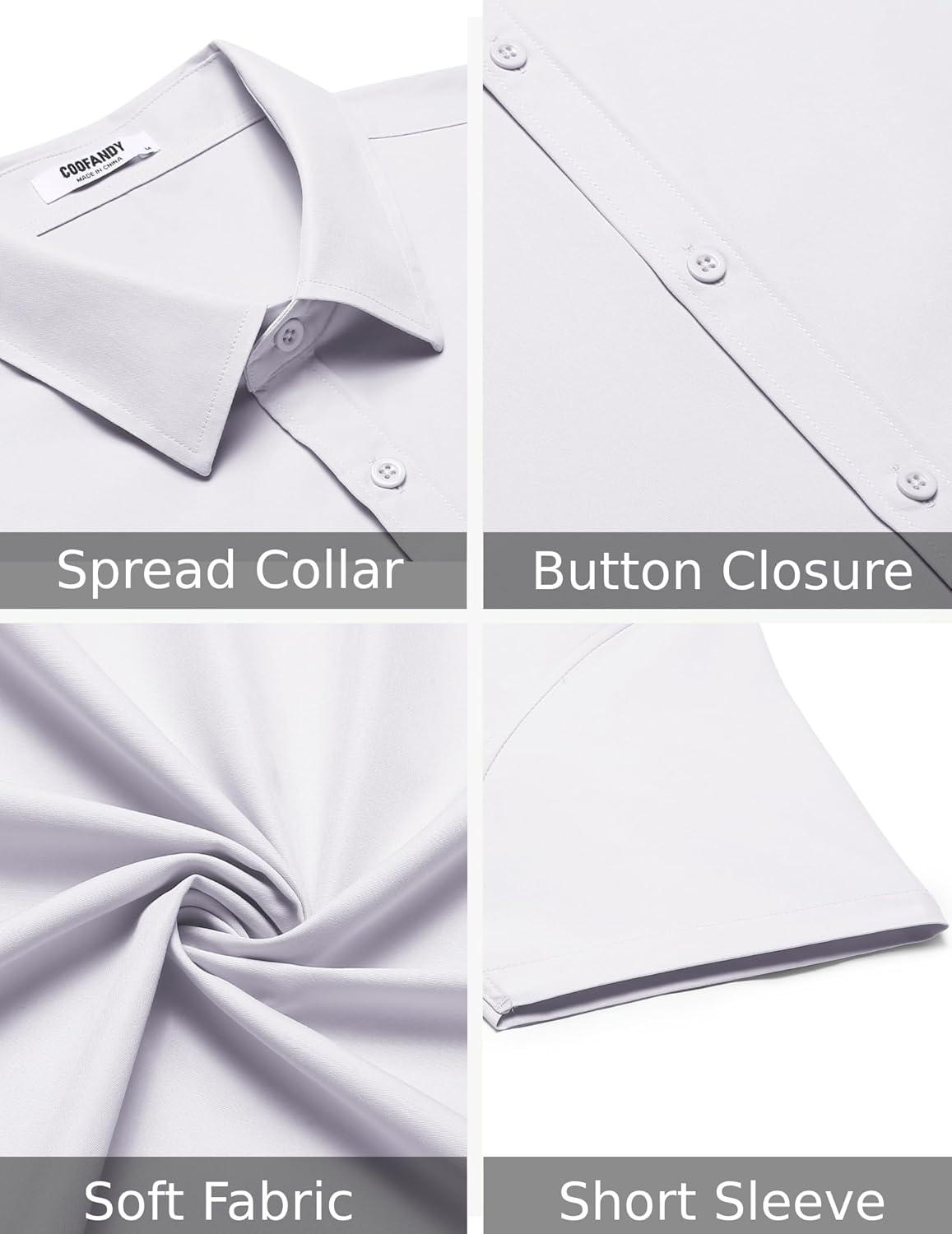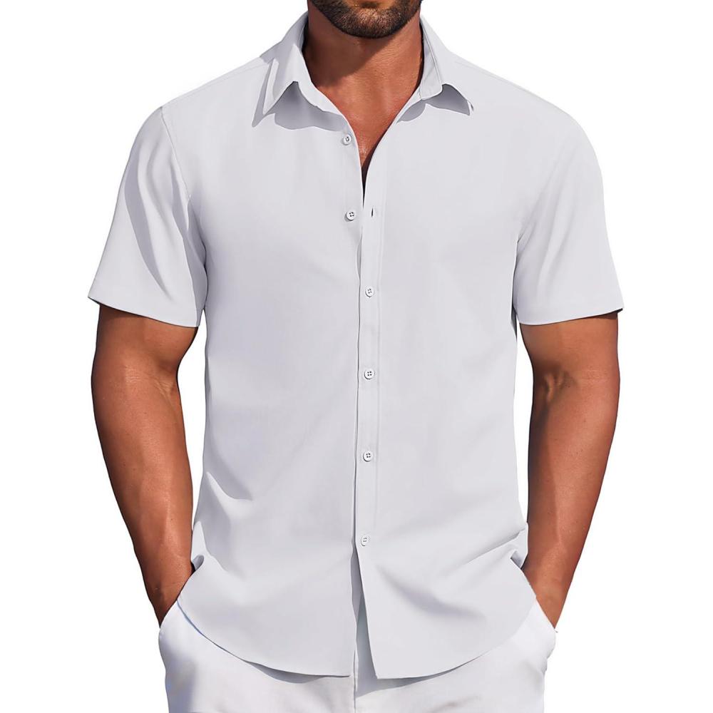 COOFANDY Men's Casual Dress Shirt Short Sleeve Button Down Shirts Summer Wedding Untucked Shirt(White)
