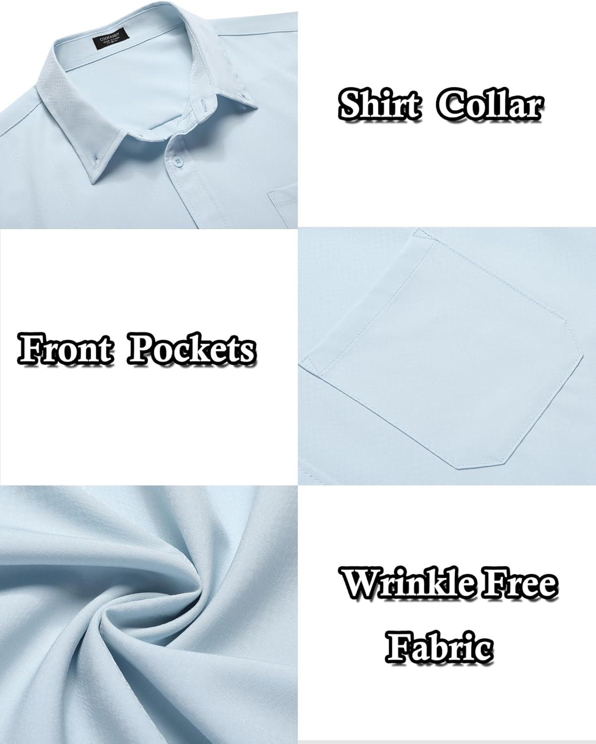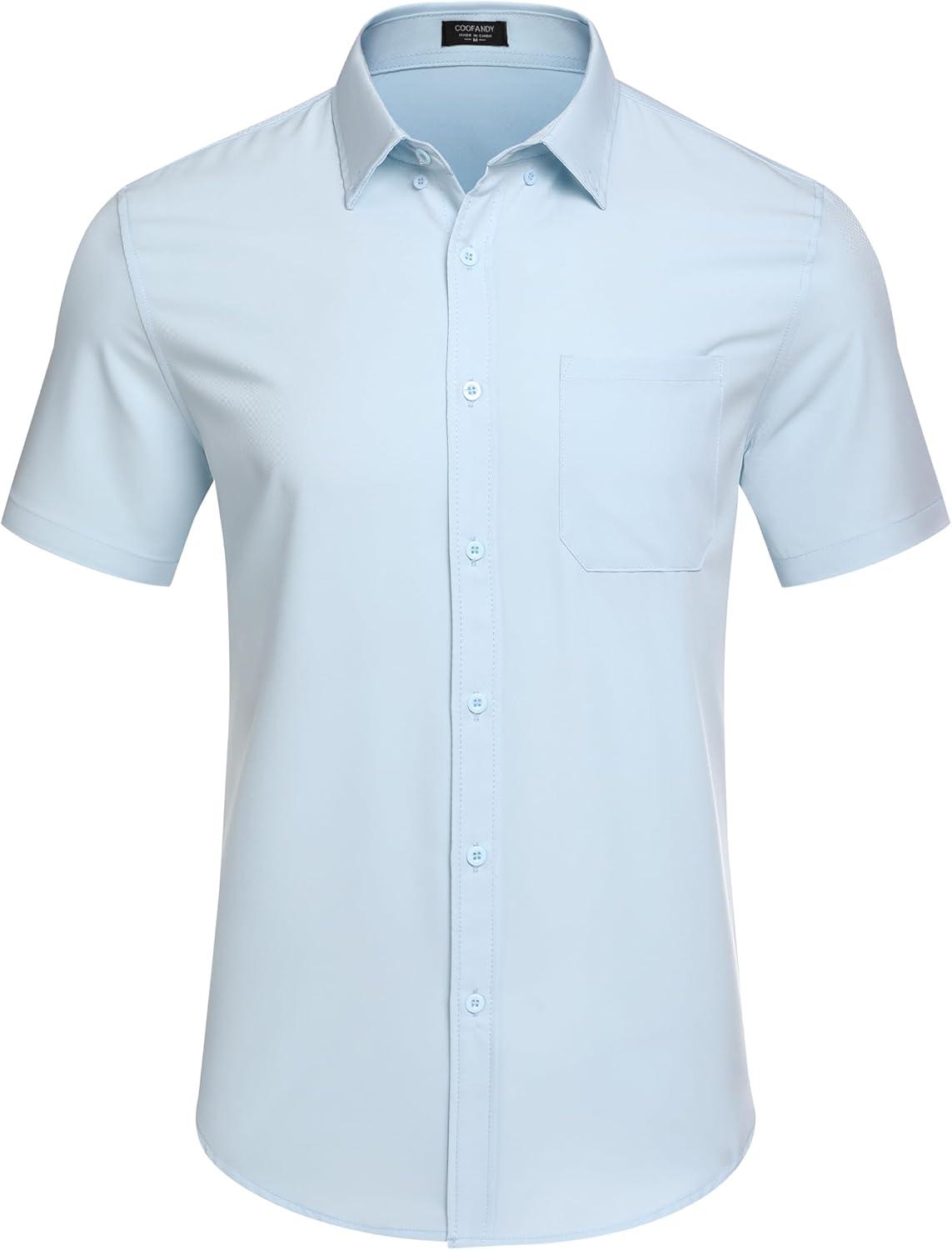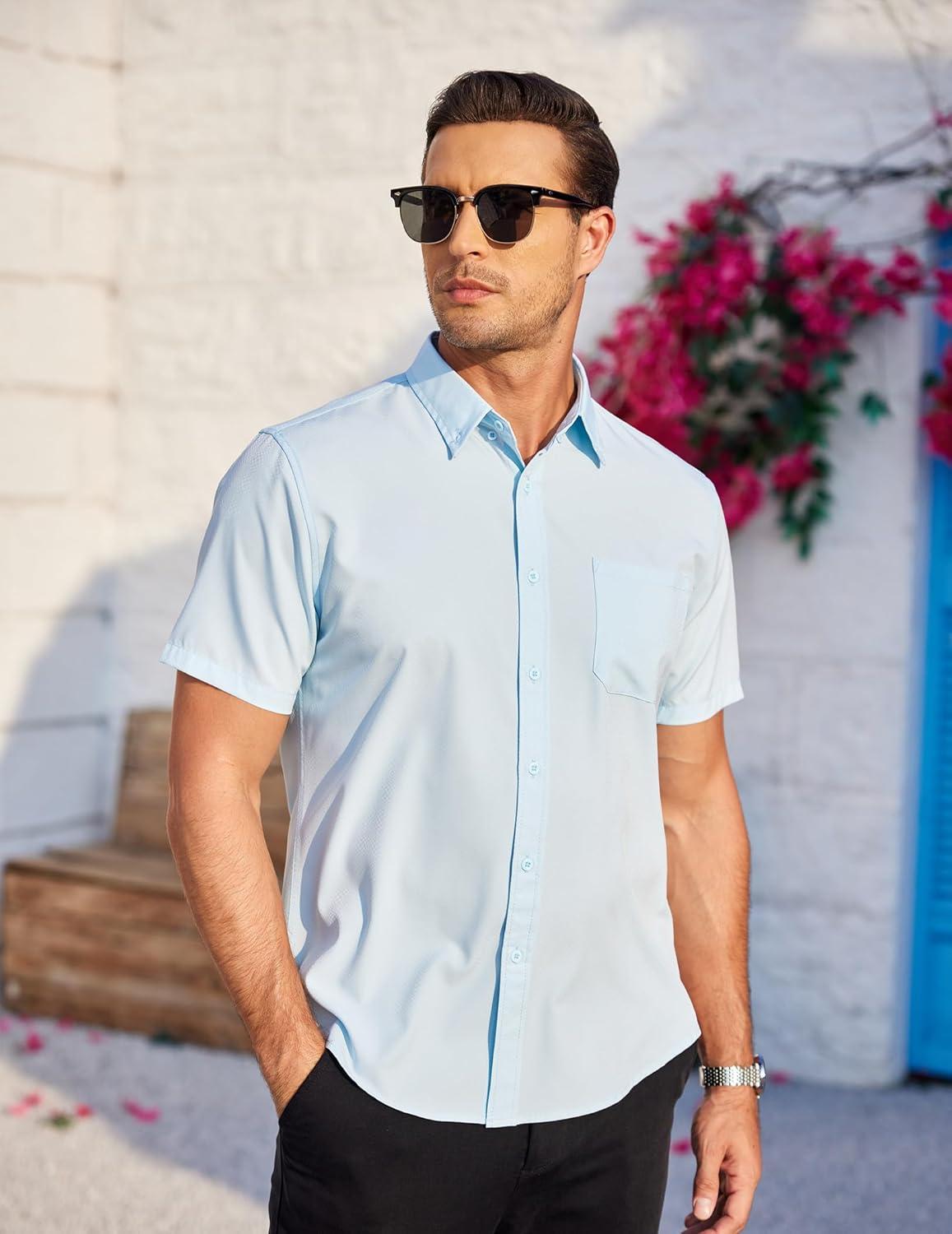 COOFANDY Mens Casual Dress Shirt Short Sleeve Wrinkle Free Dress Shirt Business Casual Shirts(Light Blue)