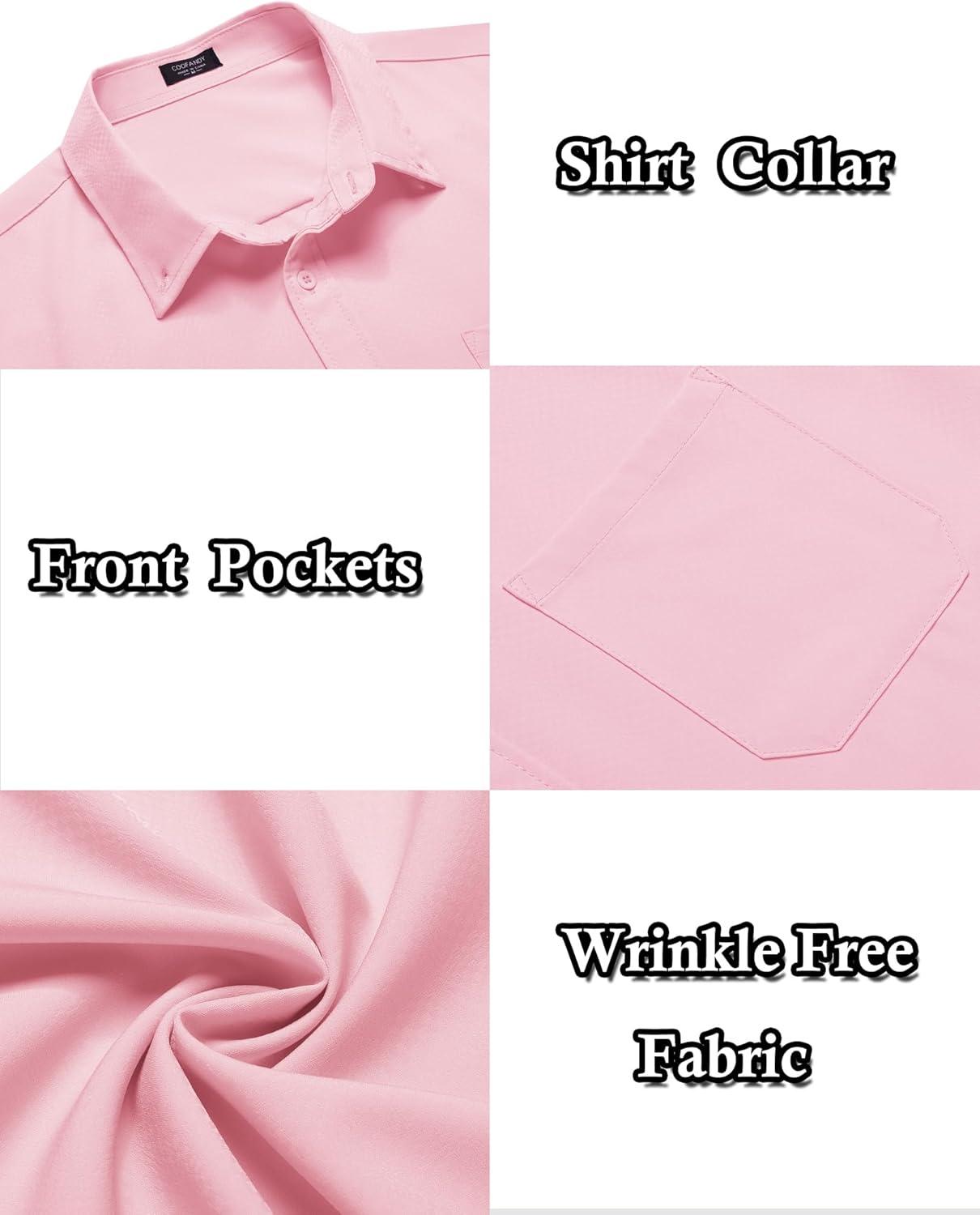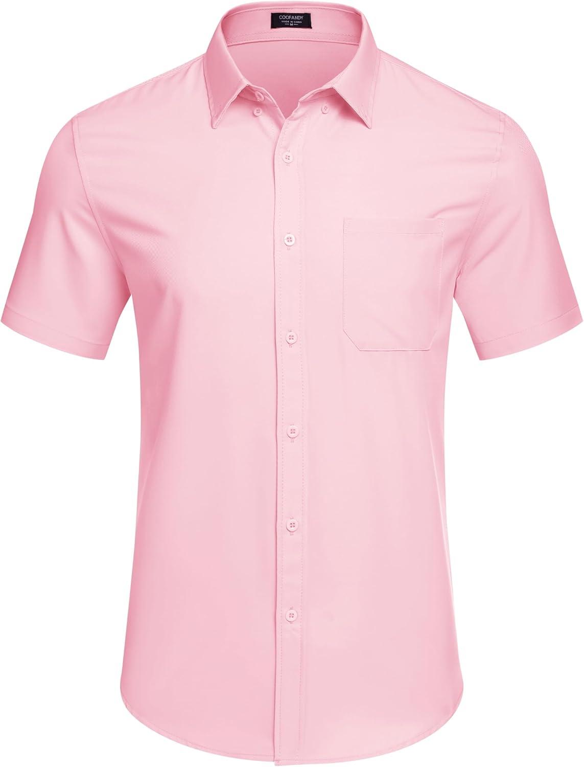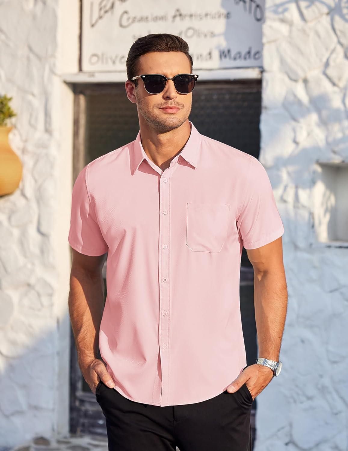 COOFANDY Mens Casual Dress Shirt Short Sleeve Wrinkle Free Dress Shirt Business Casual Shirts(Light Pink)