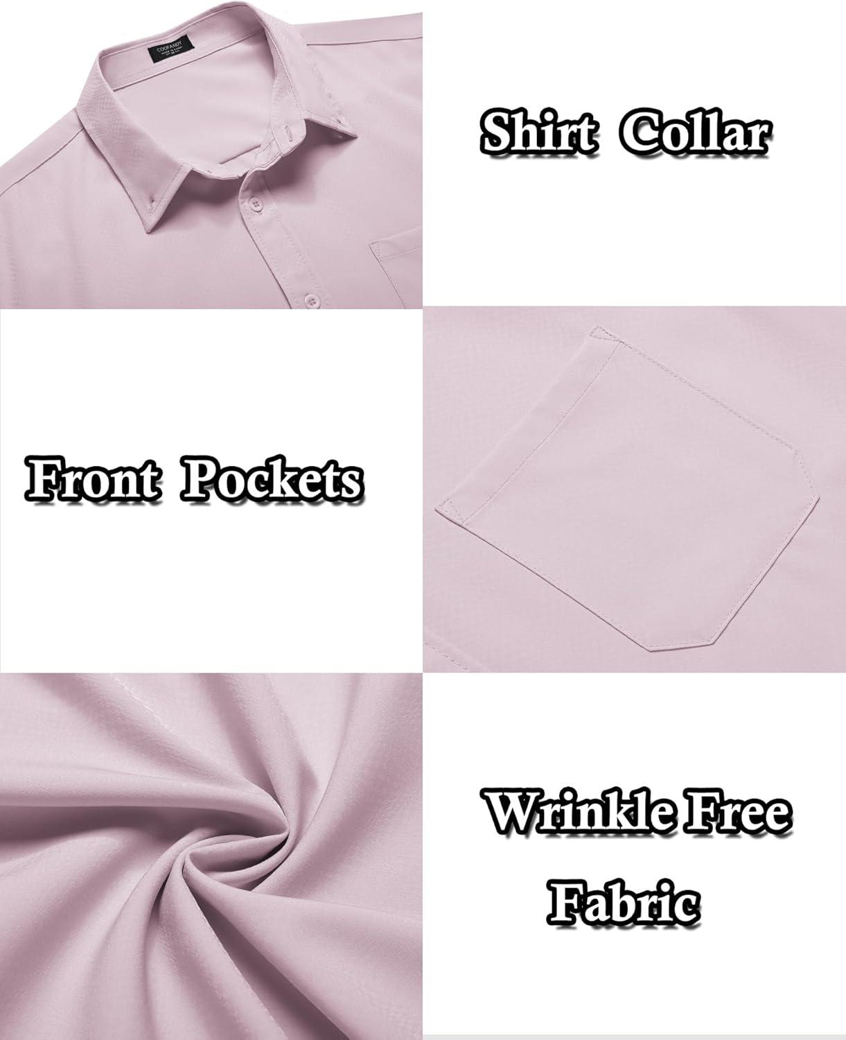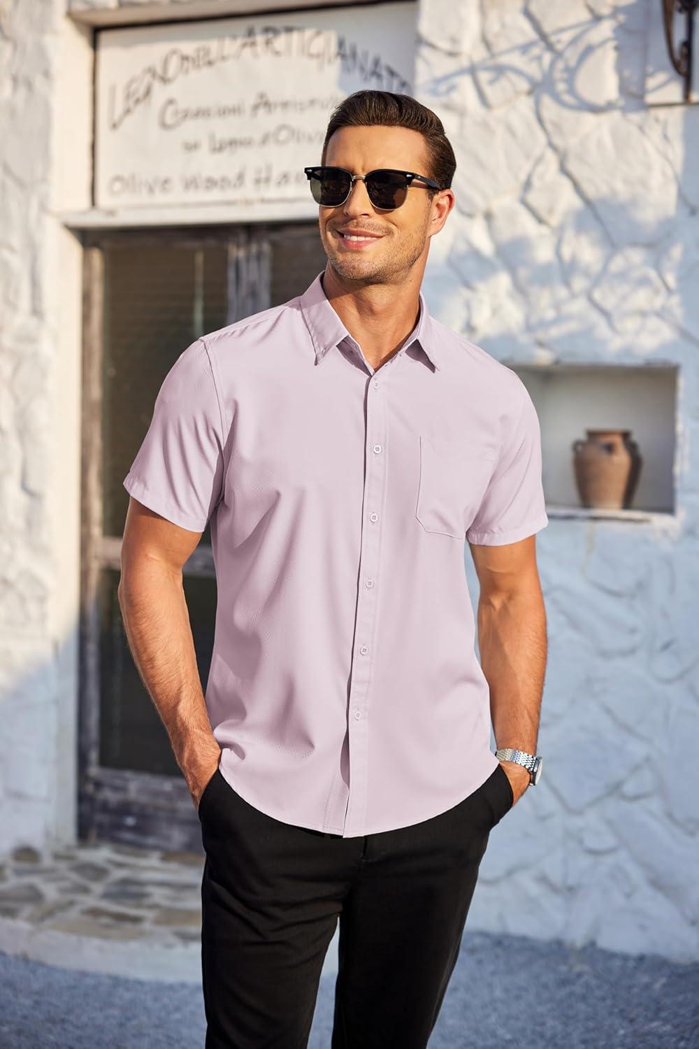 COOFANDY Mens Casual Dress Shirt Short Sleeve Wrinkle Free Dress Shirt Business Casual Shirts(Light Purple)