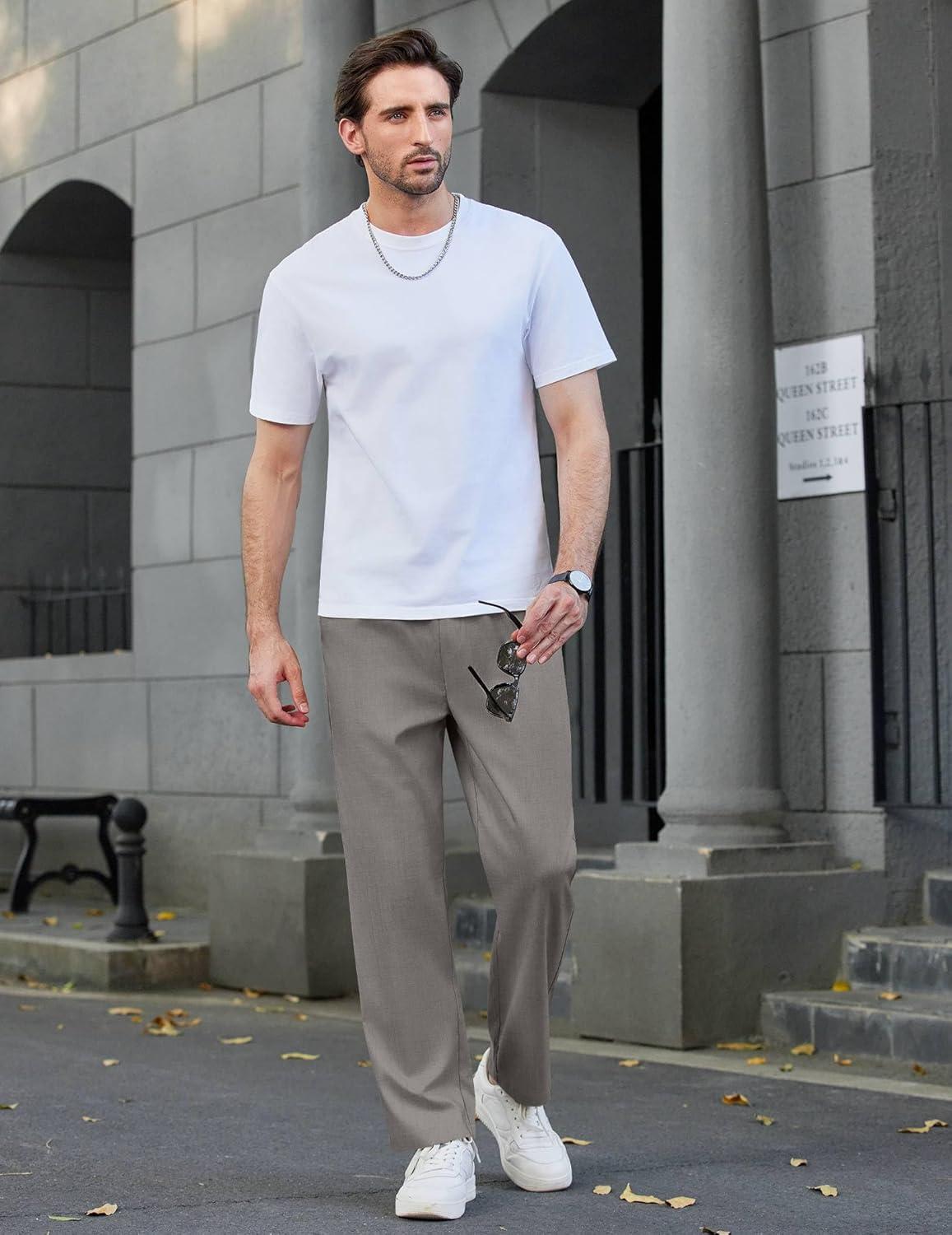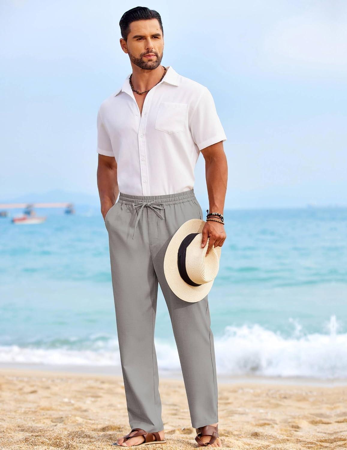 COOFANDY Mens Casual Elastic Waist Pants Drawstring Summer Beach Pant Lightweight Stretch Linen Trouser(Medium Gray)