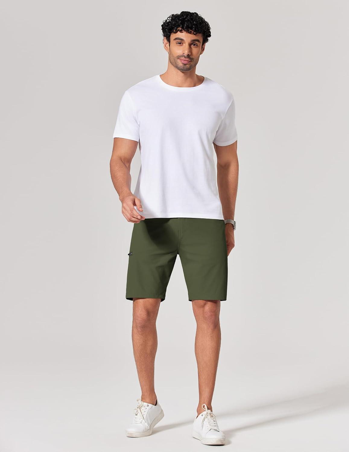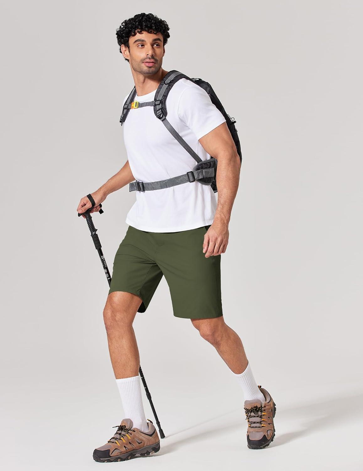 COOFANDY Mens Casual Golf Shorts 9" Stretch Lightweight Quick Dry Summer Hiking Travel Shorts with Zipper Pockets(Army Green)