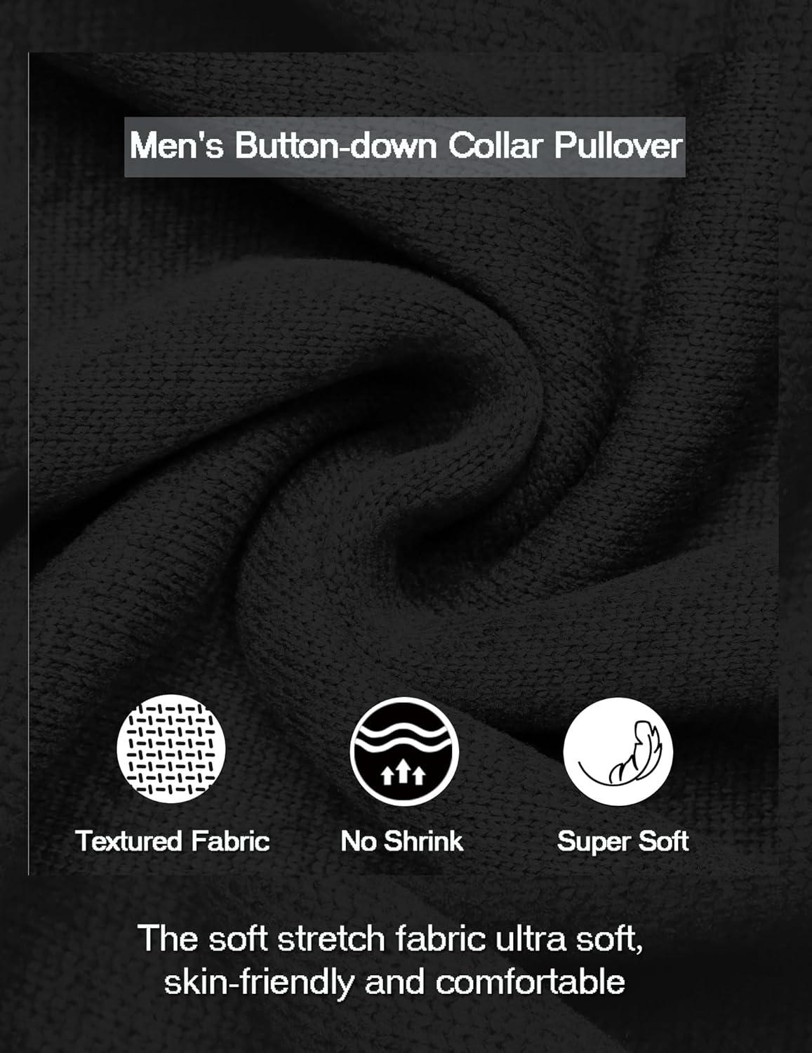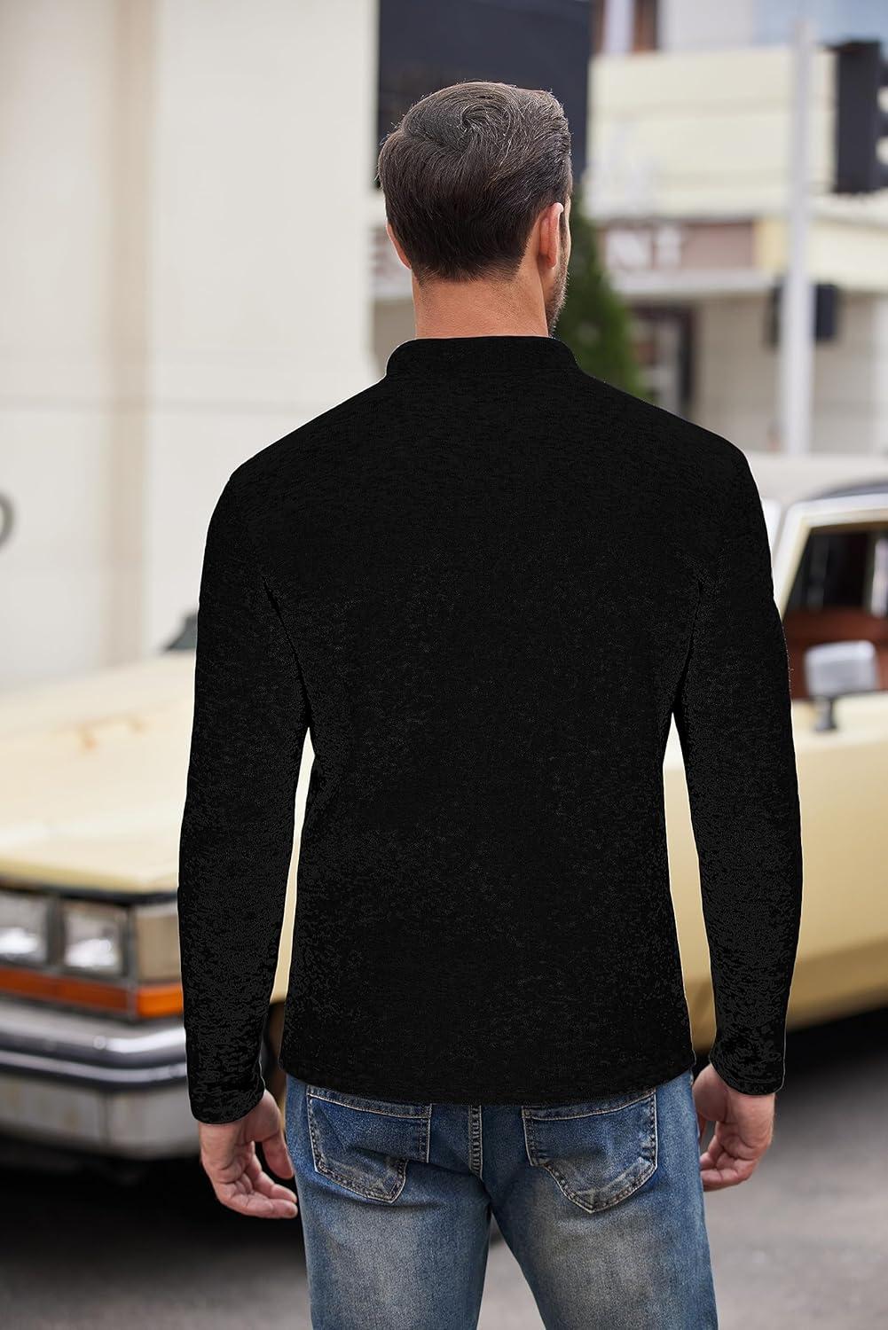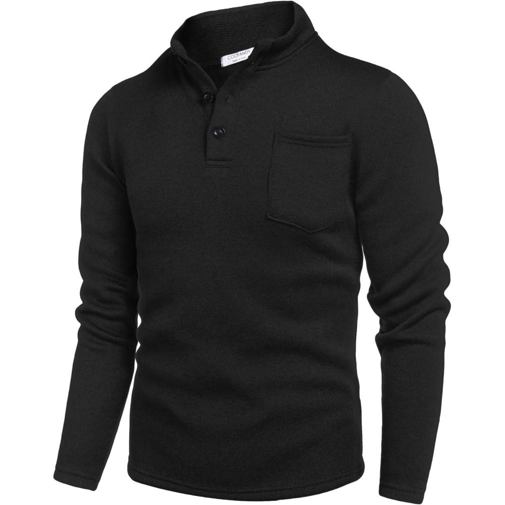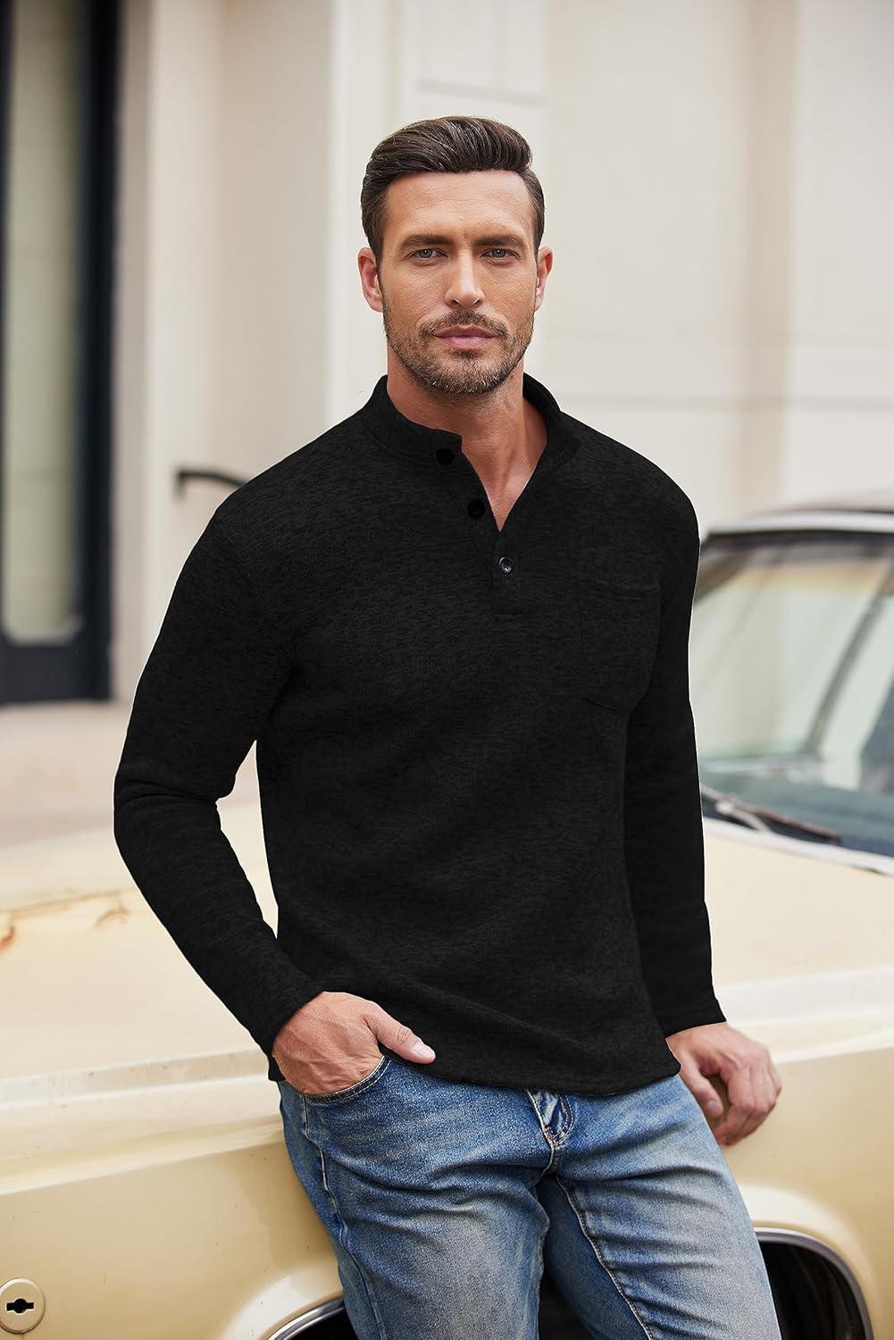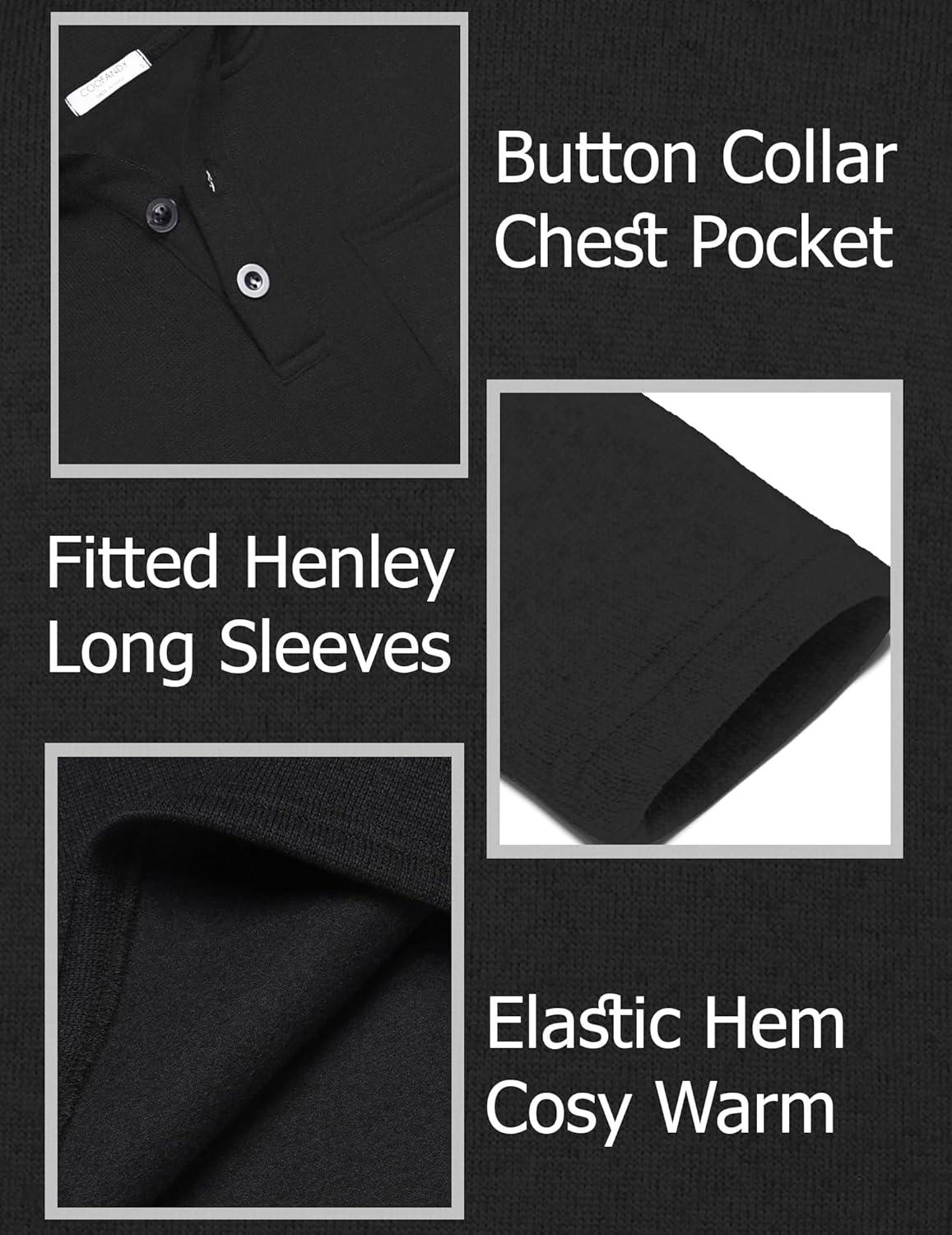 COOFANDY Men's Casual Henley Pullover Sweatshirt Thermal Fleece Slim Fit Sweater(Black)