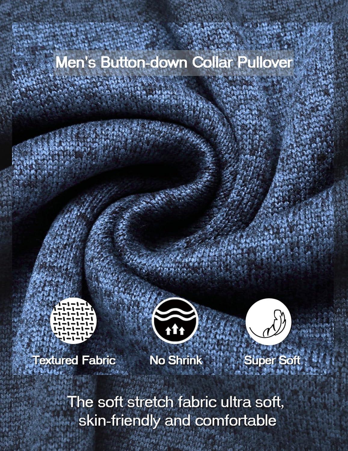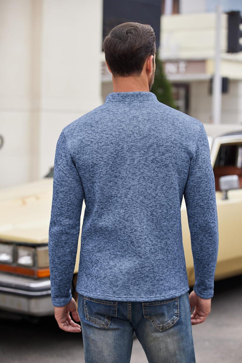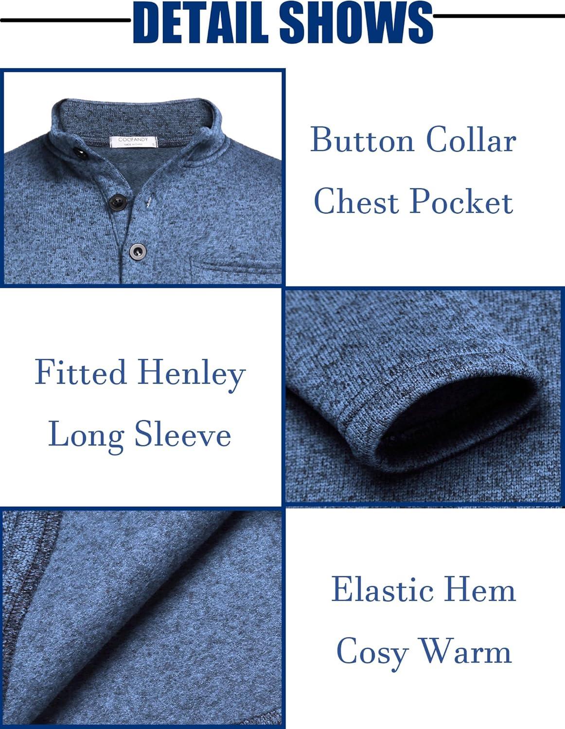 COOFANDY Men's Casual Henley Pullover Sweatshirt Thermal Fleece Slim Fit Sweater(Blue and Black)