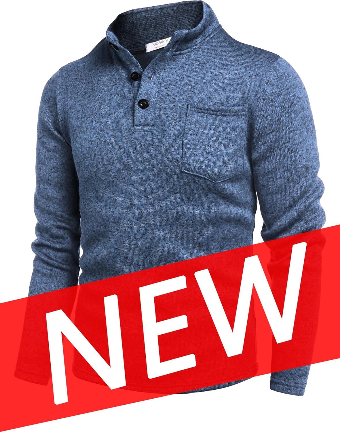 COOFANDY Men’s Casual Henley Pullover Sweatshirt Thermal Fleece Slim Fit Sweater(Coffee)