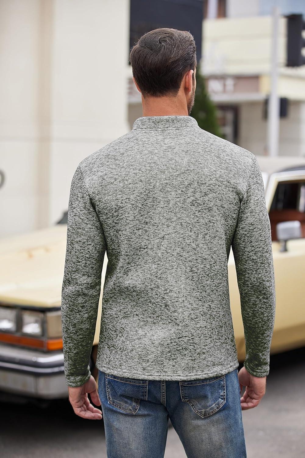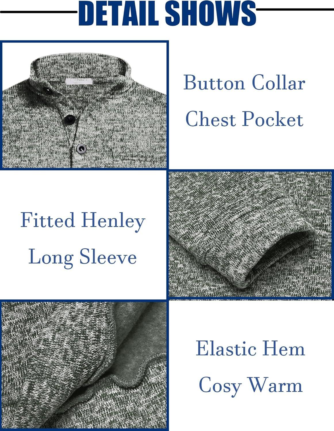 COOFANDY Men’s Casual Henley Pullover Sweatshirt Thermal Fleece Slim Fit Sweater(Green and Black)