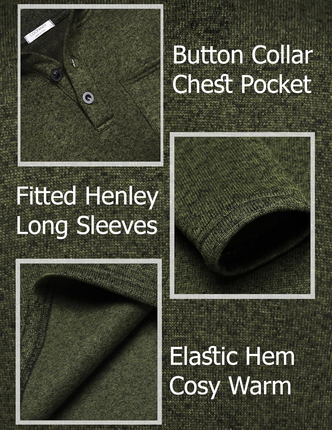 COOFANDY Men's Casual Henley Pullover Sweatshirt Thermal Fleece Slim Fit Sweater(Green Black Jasper)