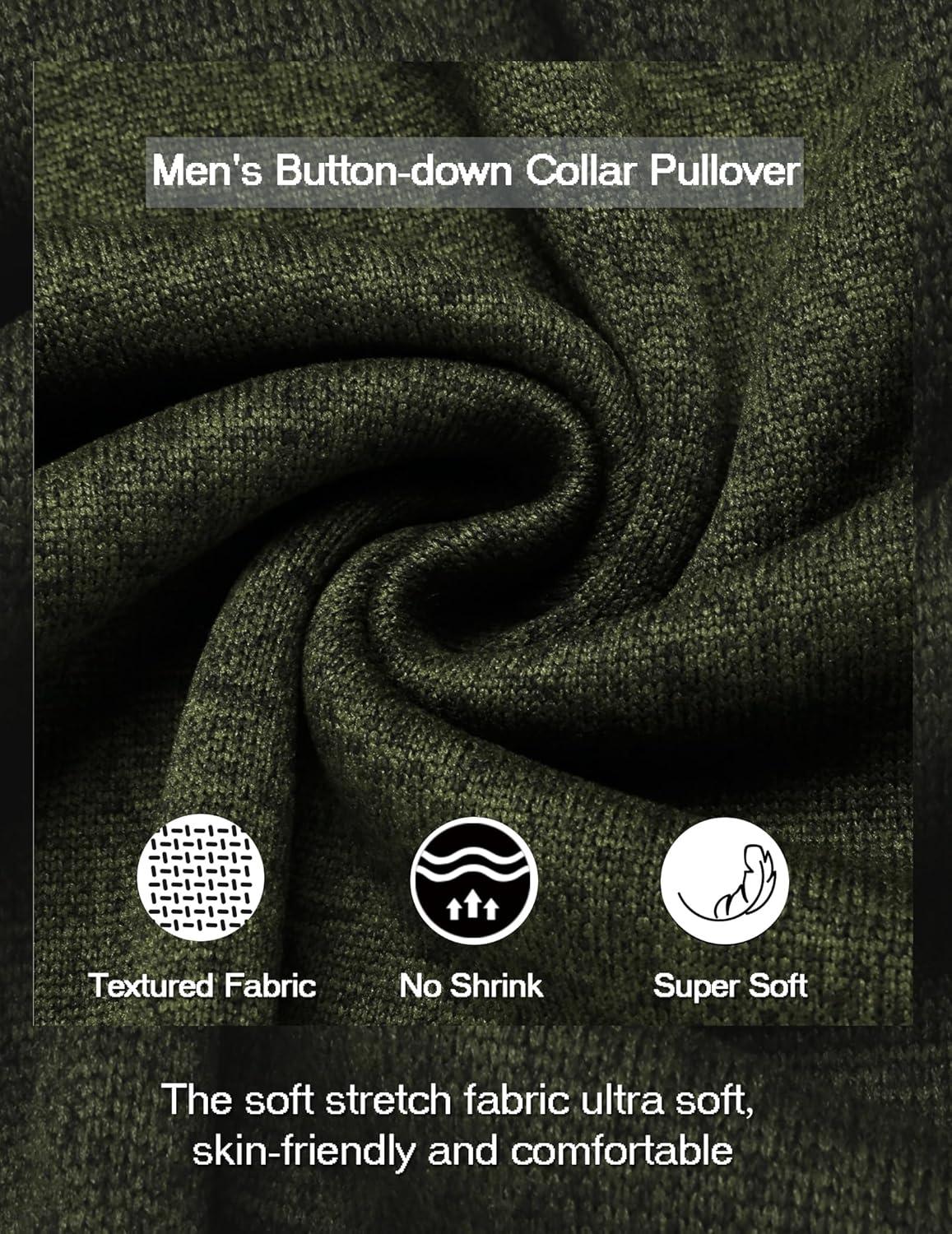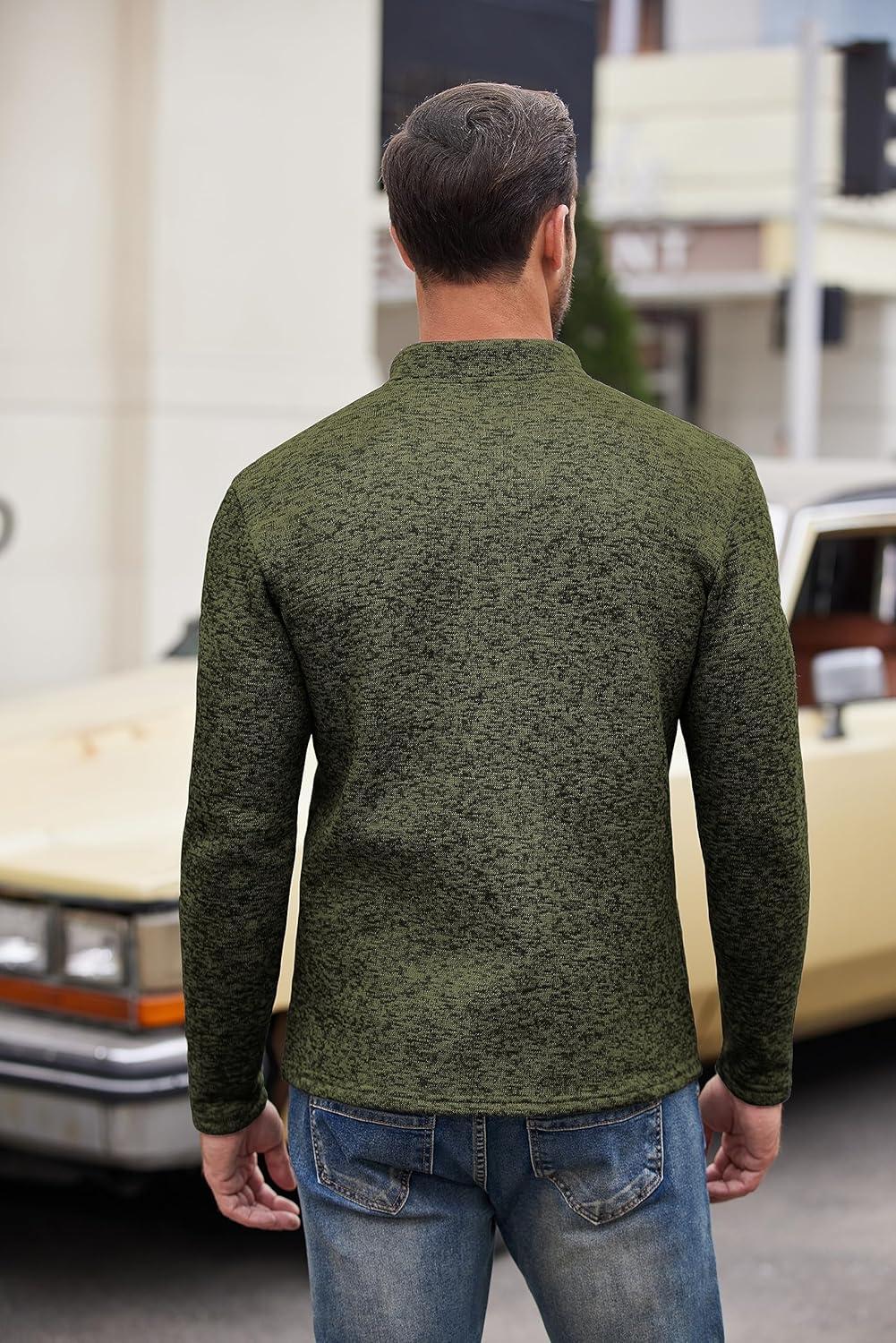 COOFANDY Men’s Casual Henley Pullover Sweatshirt Thermal Fleece Slim Fit Sweater(Green Black Jasper)