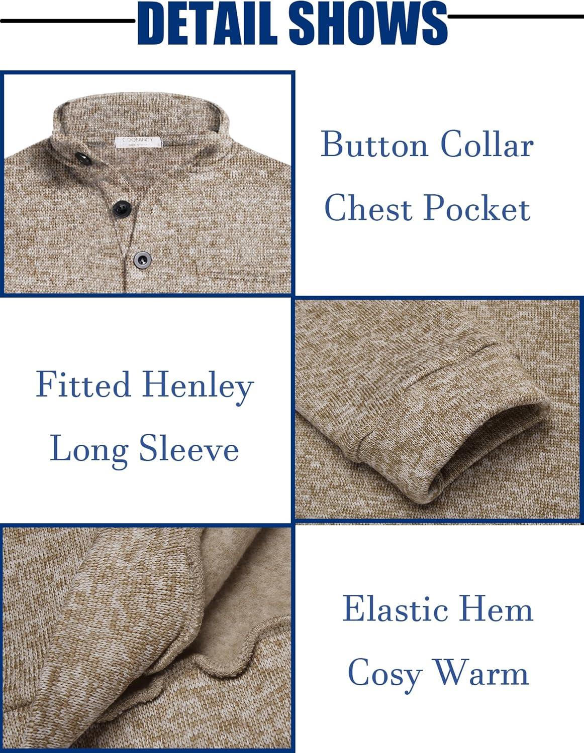 Get up to 70% off on COOFANDY Men’s Casual Henley Pullover Sweatshirt Thermal Fleece Slim Fit Sweater(Light Khaki) styles during our end-of-season clearance event.