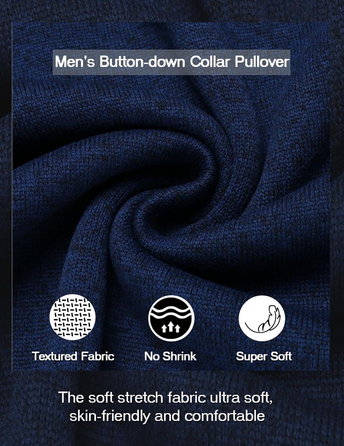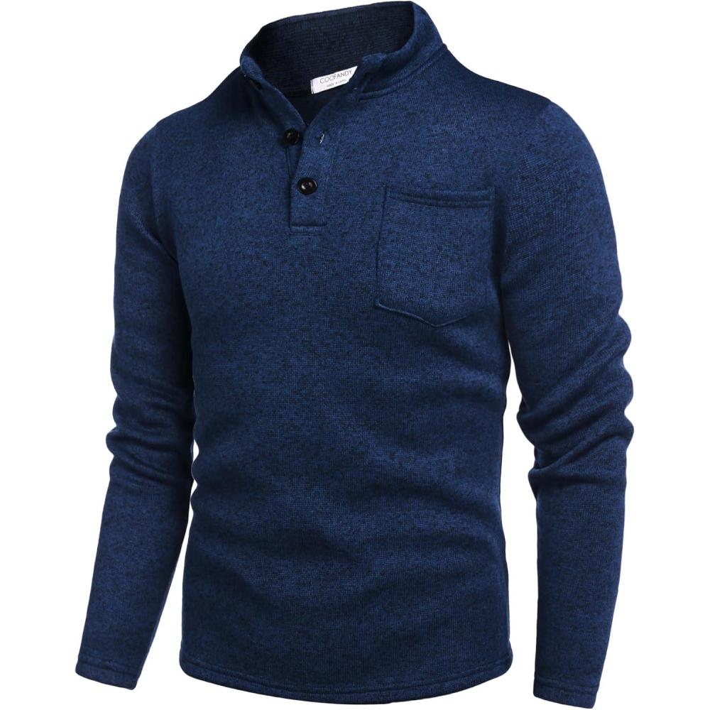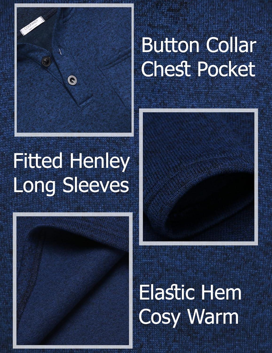 COOFANDY Men's Casual Henley Pullover Sweatshirt Thermal Fleece Slim Fit Sweater(Navy Blue)