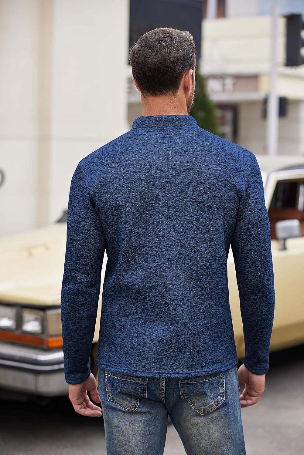 COOFANDY Men’s Casual Henley Pullover Sweatshirt Thermal Fleece Slim Fit Sweater(Navy Blue)