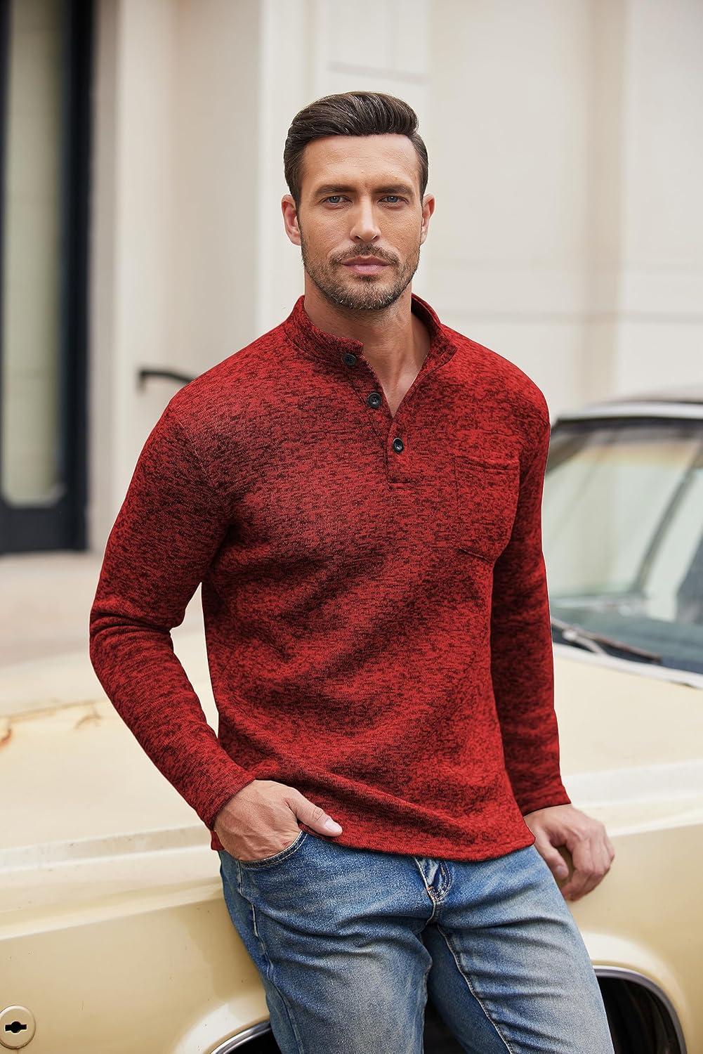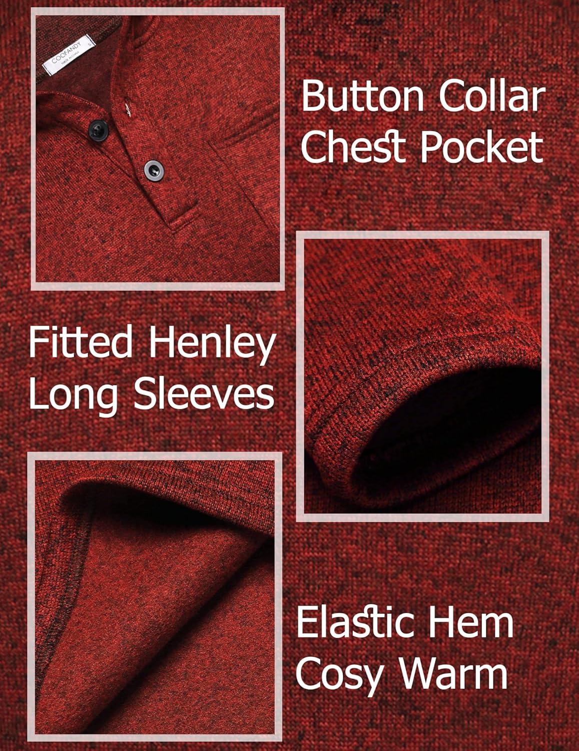 COOFANDY Men’s Casual Henley Pullover Sweatshirt Thermal Fleece Slim Fit Sweater(Wine Red)