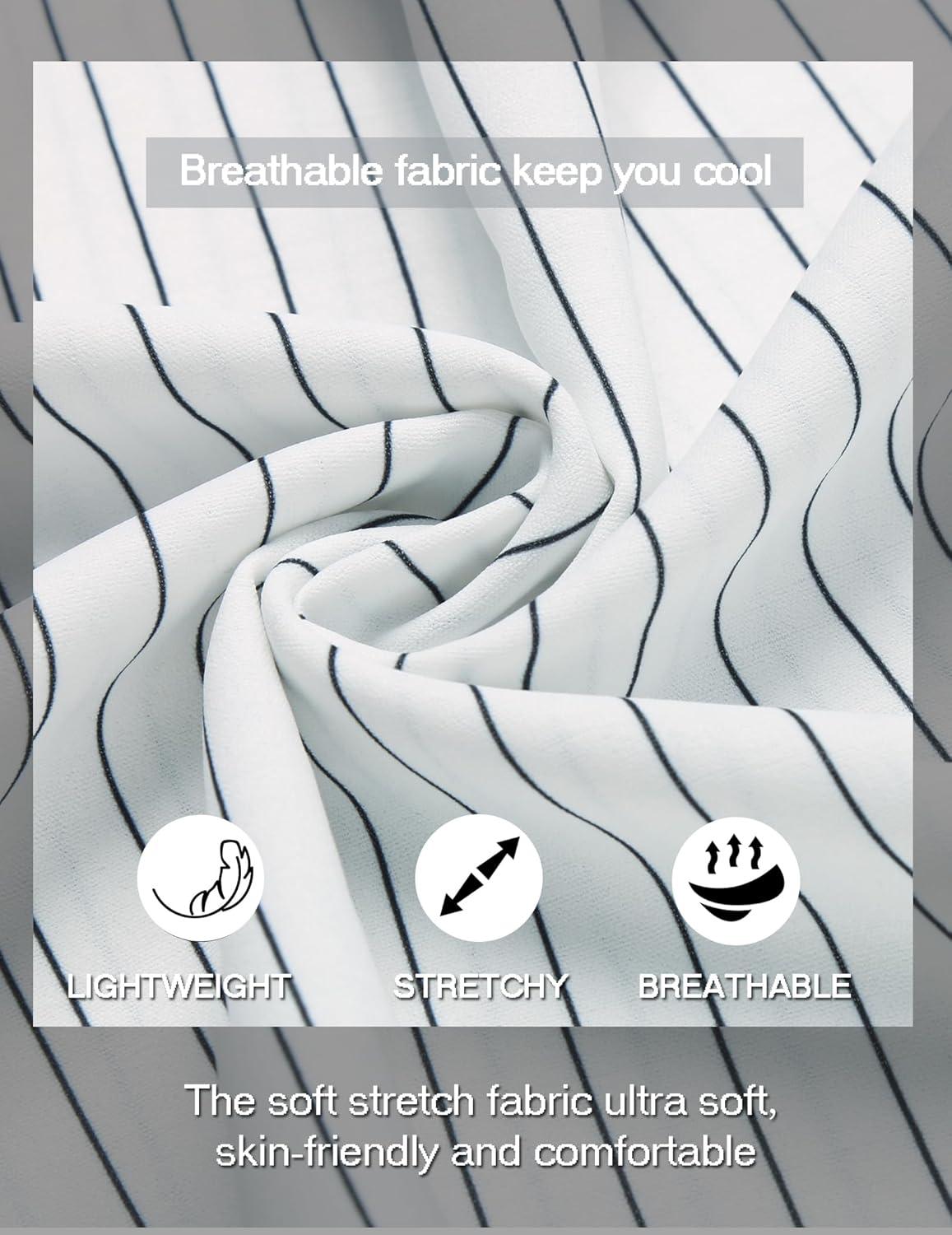 COOFANDY Men's Casual Henley Shirt Band Collar Short Sleeve Shirt Summer Beach Hippie T-Shirt(Black Stripes on White)