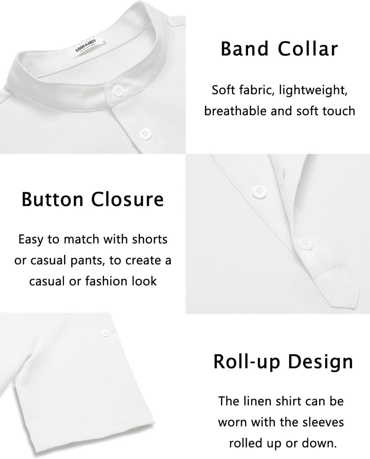 Be the first to review “COOFANDY Men’s Casual Henley Shirt Short Sleeve Band Collar Linen Shirt Summer Beach Hippie T-Shirts(A-white)”